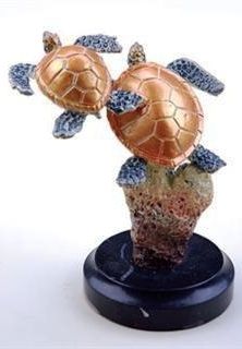 Sea Turtle Pair Bronze Sculpture - 5"H 4"W 4 "D - Great Attention To Detail - Beautiful Finish - Lost Wax Cast