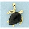 In 14K yellow gold, this ring contains a 12ct pear shaped onyx gemstone. It is 1 1/8 inches long. 3.5g