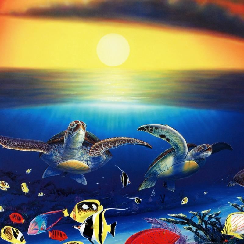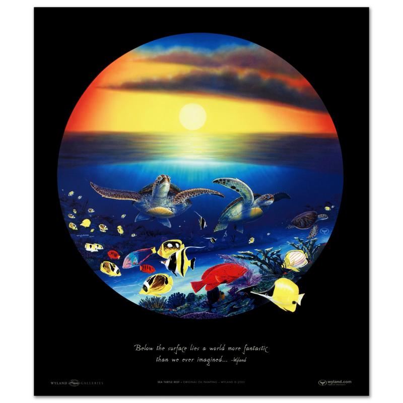 "Sea Turtle Reef" is a poster by Wyland. Measures approx. 19" x 22" (image).