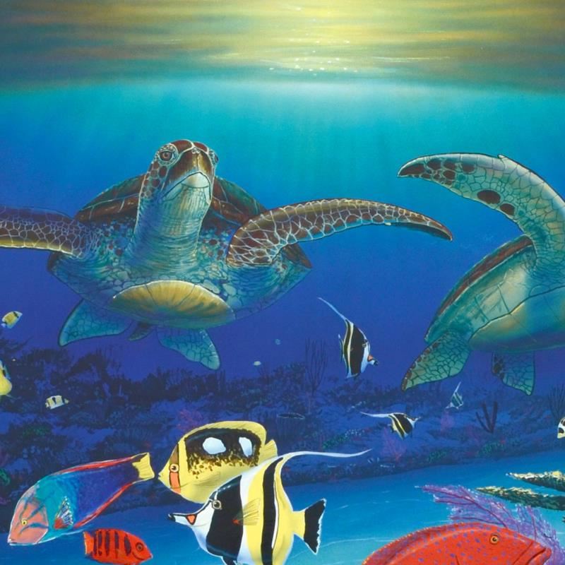 Wyland's passion for marine life and aquatically-inspired artwork is evident in everything he creates. "Sea Turtle Reef" is a limited edition lithograph on paper, numbered and hand signed by Wyland! Includes Certificate of Authenticity! Measures approx. 20" x 21.5" (with border), 18.5" x 18.5" (image).