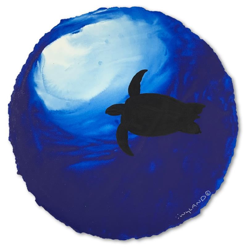 "Sea Turtle in Blue" is an original painting, watercolor on deckle edge paper by Wyland. Hand signed by the artist, the piece comes custom framed and with a letter of authenticity. Measures approximately 30" x 30" (framed), 19.5" x 19.5" (image).