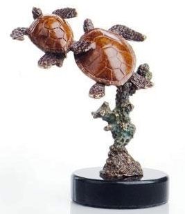 Sea Turtles Bronze Sculpture - 5.5"H 4"W 4 "D - Great Attention To Detail - Beautiful Finish - Lost Wax Cast