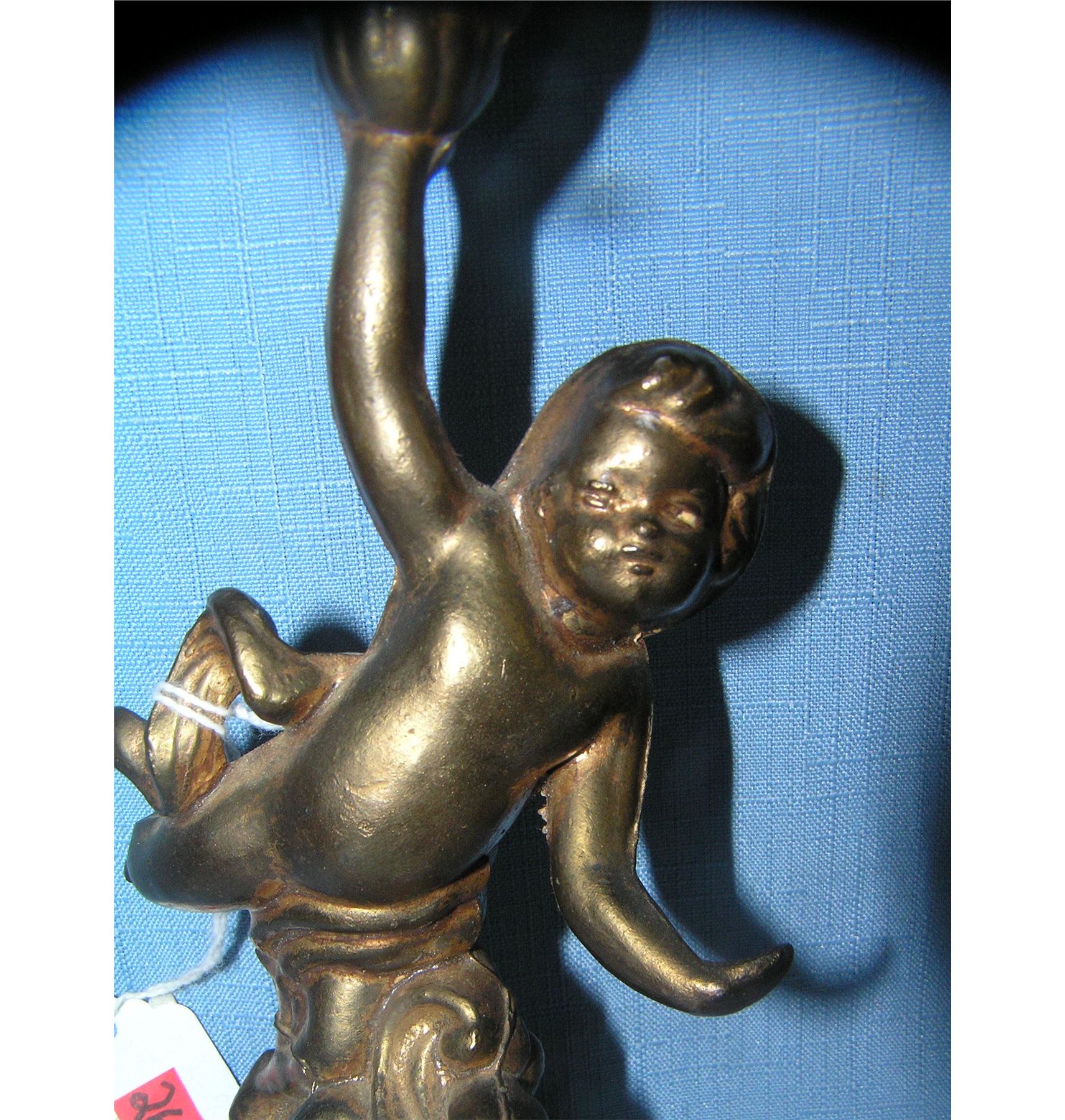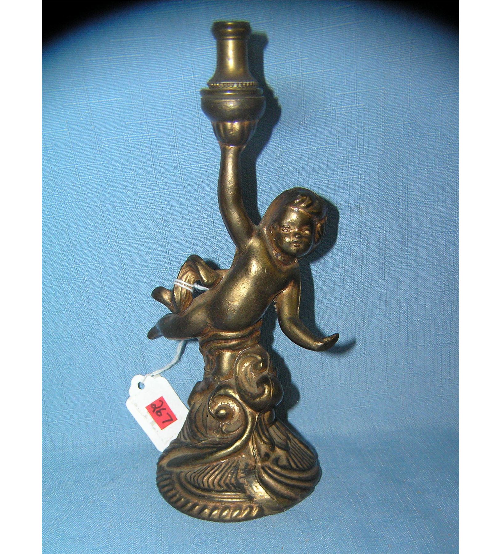All bronzed cast metal sea cherub on base candle holder/ lamp est. value $40.00-$50.00