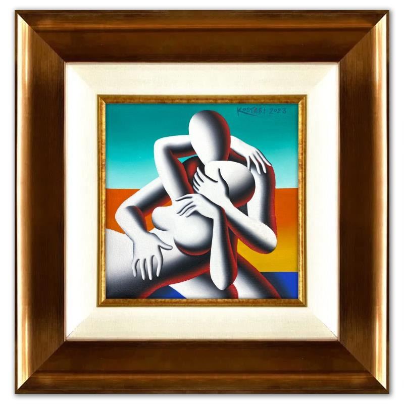 "Sea of Devotion" is an original oil painting on canvas by Mark Kostabi, hand signed by the artist. This piece comes custom framed. Includes Certificate of Authenticity. Measures approx. 21" x 21" (frame), 11" x 11" (image).