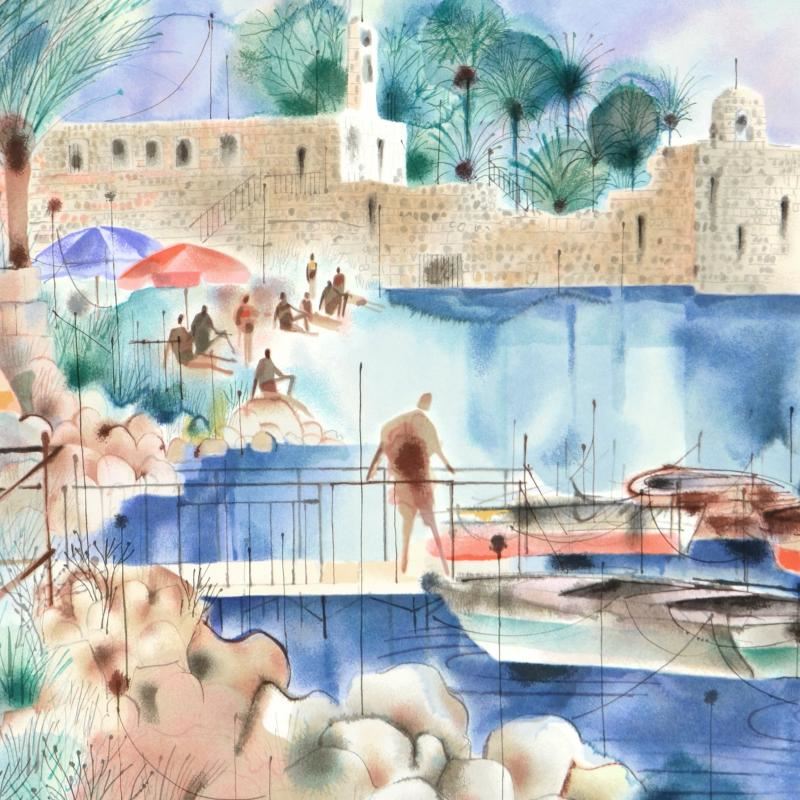 "Sea of Galilee" is a limited edition serigraph on paper by Shmuel Katz (1926-2010), numbered and hand signed by the artist! Measures approx. 38" x 27 (with border), 35 x 24" (image).