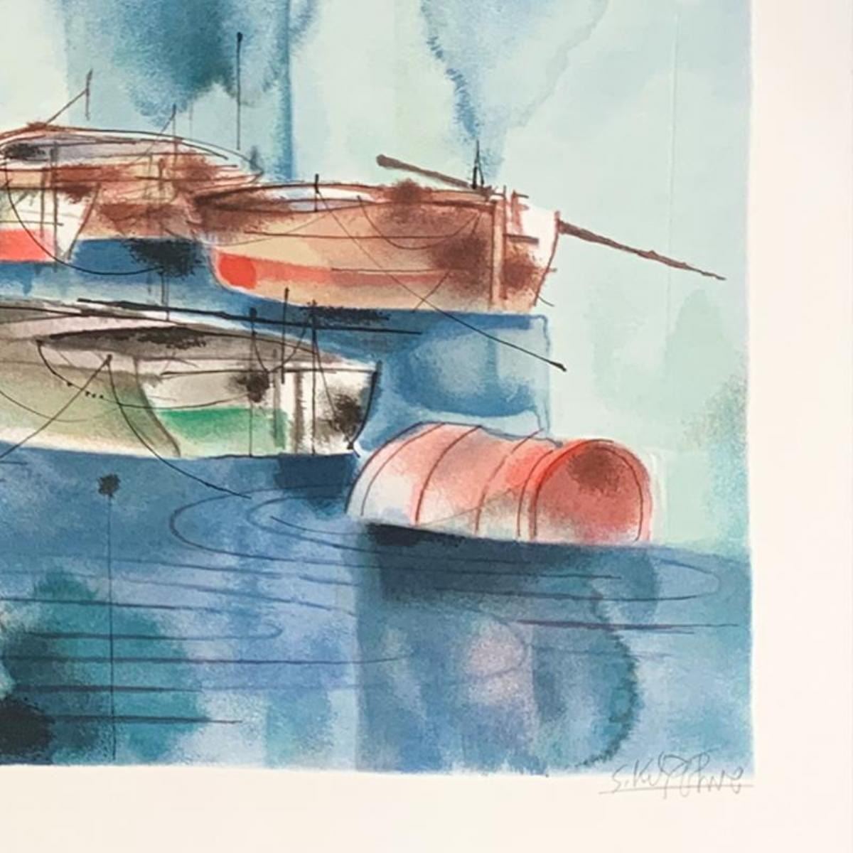 Sea of Galilee by Shmuel Katz (1926-2010). "Sea of Galilee" is a limited edition serigraph on paper by Shmuel Katz (1926-2010). It is numbered and hand signed and includes a letter of authenticity. Measures approximately 35" x 24" (image).