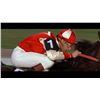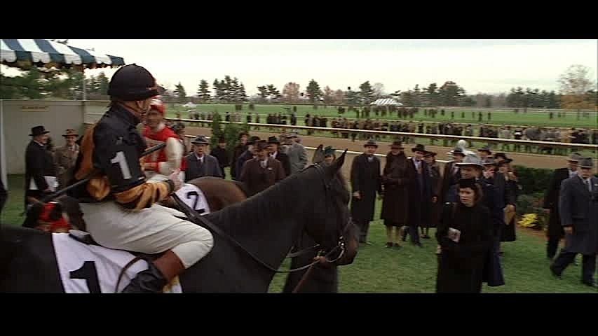 (Universal Pictures, 2003) This jockey armband number was acquired by the production for use by various actors during filming. The armband is made of leather with attached strap and metal buckle. A white leather "#1" is sewn in place on the outside. Wear from use is present, measures 7" x 5.5".