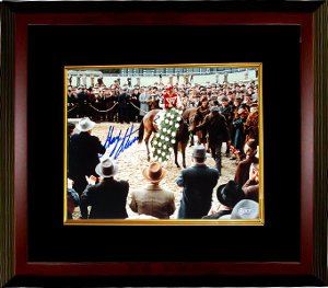 Gary Stevens is a Hall of Fame jockey who has been riding winners since 1979, when he was just 16 years old. He won the Kentucky Derby, the Preakness and the Belmont, and rode such horses as Winning Colors, Thunder Gulch, Silver Charm, Victory Gallup and Point Given. Stevens has also carved a niche for himself as an actor, co-starring in the Oscar-nominated film Seabiscuit as real-life jockey George "The Iceman" Woolf, who died 17 years before Stevens was even born. Gary Stevens has hand signed this 16X20 photograph of him in the winner's circle. This product comes complete with a Steiner Sports Hologram and Certificate of Authenticity. Custom Black Mat and Premium Mahogany Framed as shown.