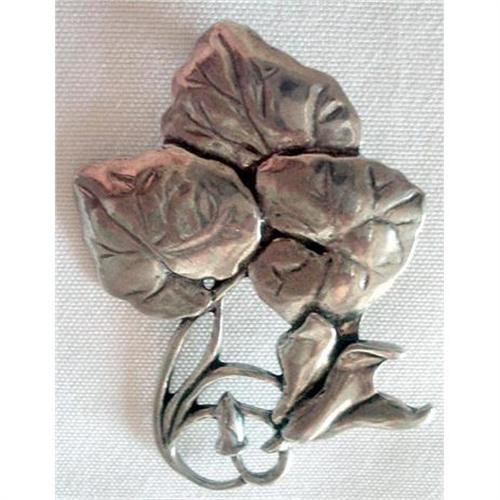 Beautiful and very large pewter brooch depicting three leaves with an open flower at the bottom, curving stems and a budding flower just under the open flower. Highly detailed showing engraving veins in the leaves and nice dimension. Measures 2-3/4" inches tall by 1-3/4" inches wide with a secure safety close on the back. Excellent condition, a lovely collector's piece and pewter jewelry is very much back in fashion now.