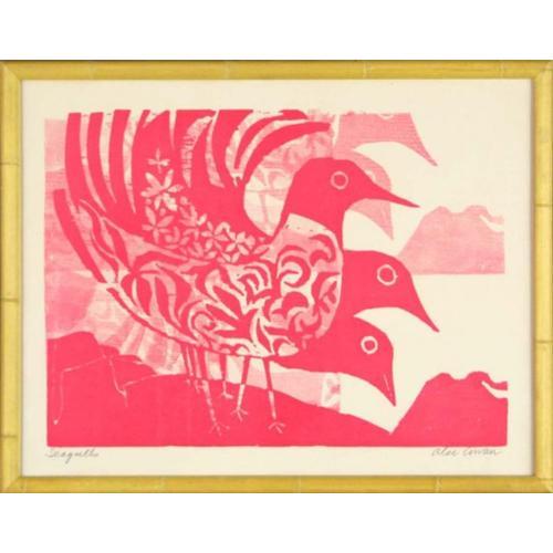 <tr><td>Title:Seagulls Block Print by Alec Cowan Framed</td></tr>