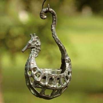 9.5"H 5"W 3"D - Iron & Glass Hanging Lantern / Candle Holder