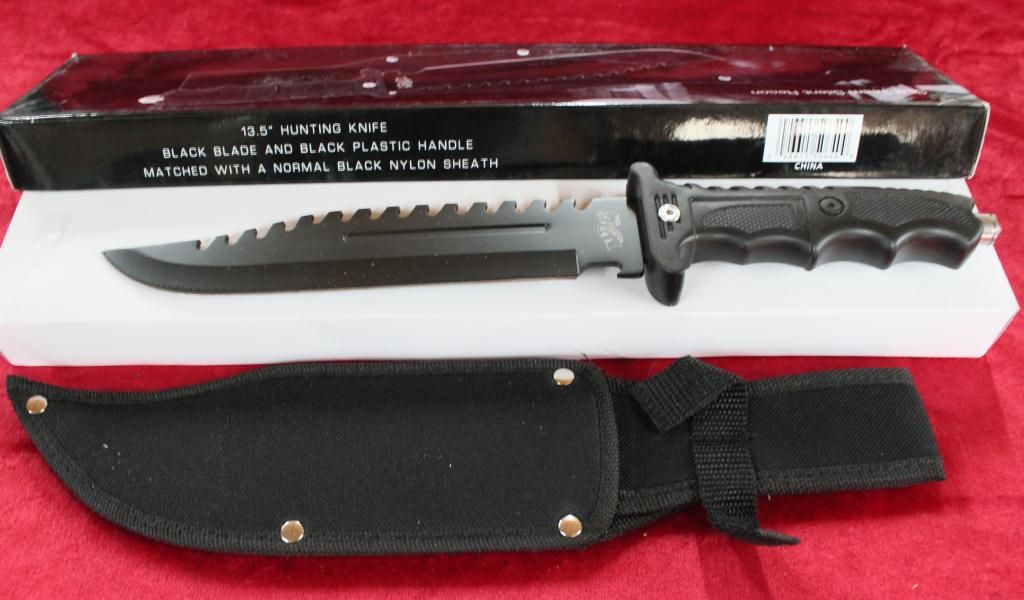 Black Blade & Black Plastic Handle With Black Nylon Sheath