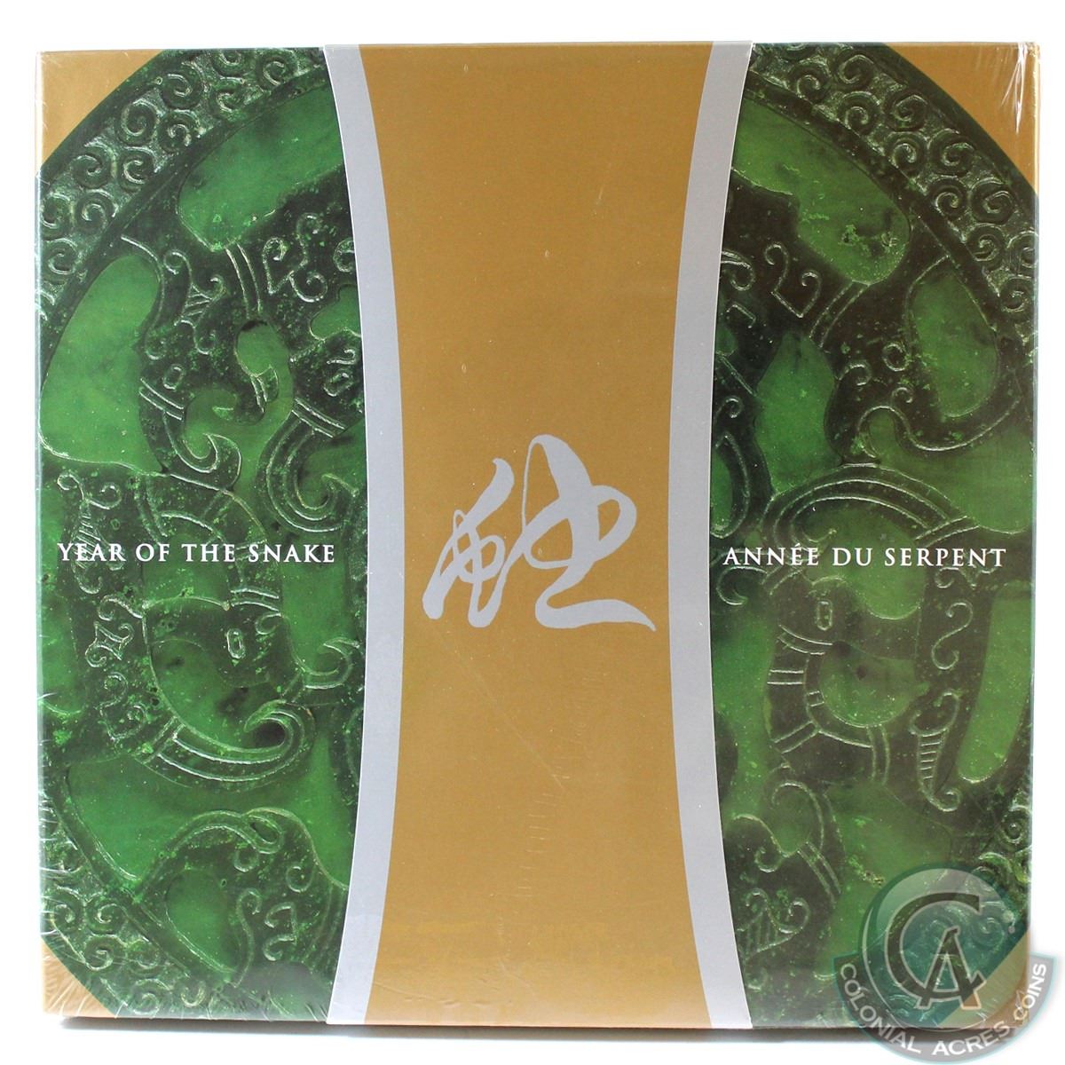 Sealed 2001 Canada $15 Year of the Snake Sterling Silver and Gold Plated Cameo Coin and Stamp Set with all Original Packaging from the RCM and Canada Post
