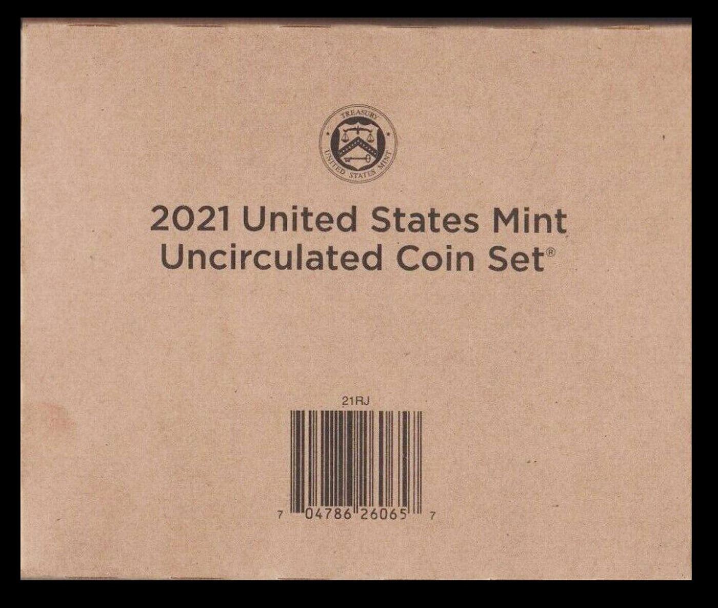 Sealed 2021 United States Mint Set in Original Government Shipped Box, Never Opened! 14 Coins Inside!. The 2021 United States Mint Uncirculated Set includes two folders, each containing 7 coins with uncirculated finishes. One folder is from the United States Mint at Philadelphia and the other is from the United States Mint at Denver. Certificates of authenticity and coin specifications are printed on the back of each folder.The 2021 edition of the United States Mint Uncirculated Set includes these coins:The final quarter in the America the Beautiful Quarters® series honoring the Tuskegee Airmen National Historic Site in Alabama. The reverse design depicts a Tuskegee Airman pilot suiting up to join the fight during World War II, with the Moton Field control tower in the background. The pilot looks upward with pride and confidence as two P- 51 Mustangs pass overhead. The inscription “THEY FOUGHT TWO WARS” is arced across the top as a reference to the dual battles the Tuskegee Airmen fought—fascism abroad and racial discrimination at home. Inscriptions are “TUSKEGEE AIRMEN,” “ALABAMA,” “2021,” and “E PLURIBUS UNUM.”General George Washington Crossing the Delaware Quarter featuring an obverse design that marks a return to the familiar depiction of George Washington by John Flanagan as it appeared on the quarter from 1932 to 1998. Inscriptions are “LIBERTY,” “IN GOD WE TRUST,” and “2021.” The reverse design features George Washington commanding his troops through the overnight crossing of the ice-choked Delaware River prior to the Battle of Trenton during the American Revolutionary War. Inscriptions are "UNITED STATES OF AMERICA," "E PLURIBUS UNUM," "CROSSING THE DELAWARE," and "QUARTER DOLLAR.”Native American $1 Coin with a reverse design honoring Native American military service. It features two eagle feathers, which were traditionally earned in battle or by performing a brave deed. Eagle feathers are revered, receiving the utmost care and handling, and are to be displayed proudly in homes. Stars representing five branches of the U.S. Military are in the foreground. A circle connects all the elements. Inscriptions are “NATIVE AMERICANS – DISTINGUISHED MILITARY SERVICE SINCE 1775,” “$1,” and “UNITED STATES OF AMERICA.”Kennedy half dollarRoosevelt dimeJefferson nickelLincoln penny