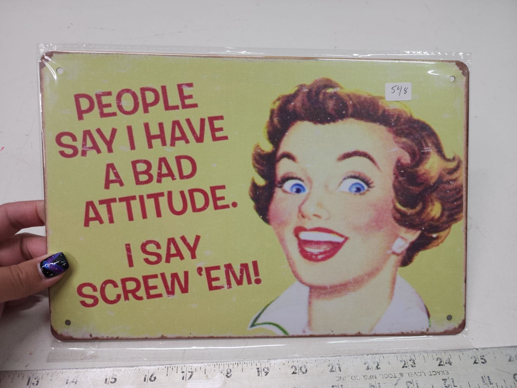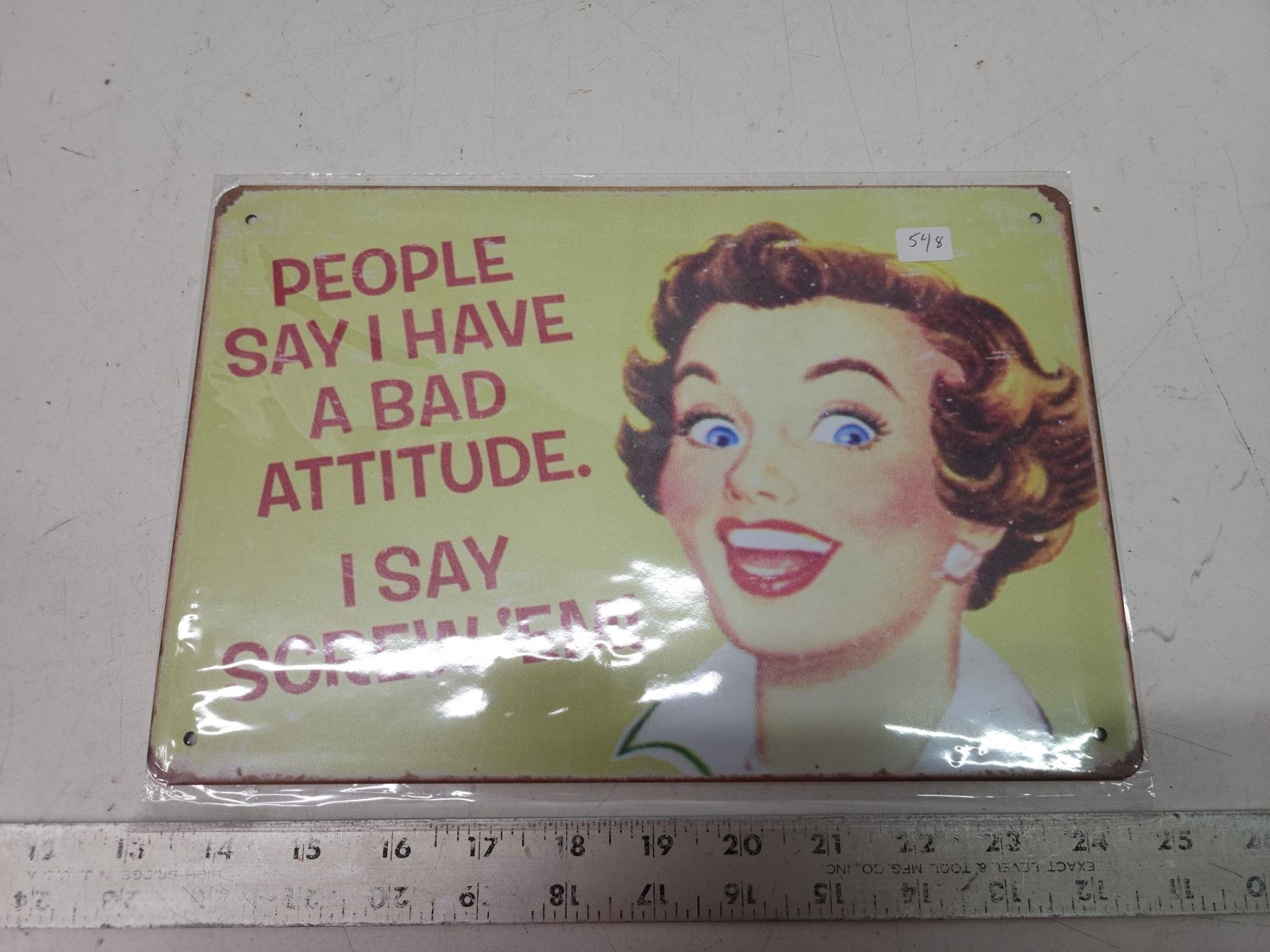 Sealed "A bad attitude" tin sign - approx. 8"x10"