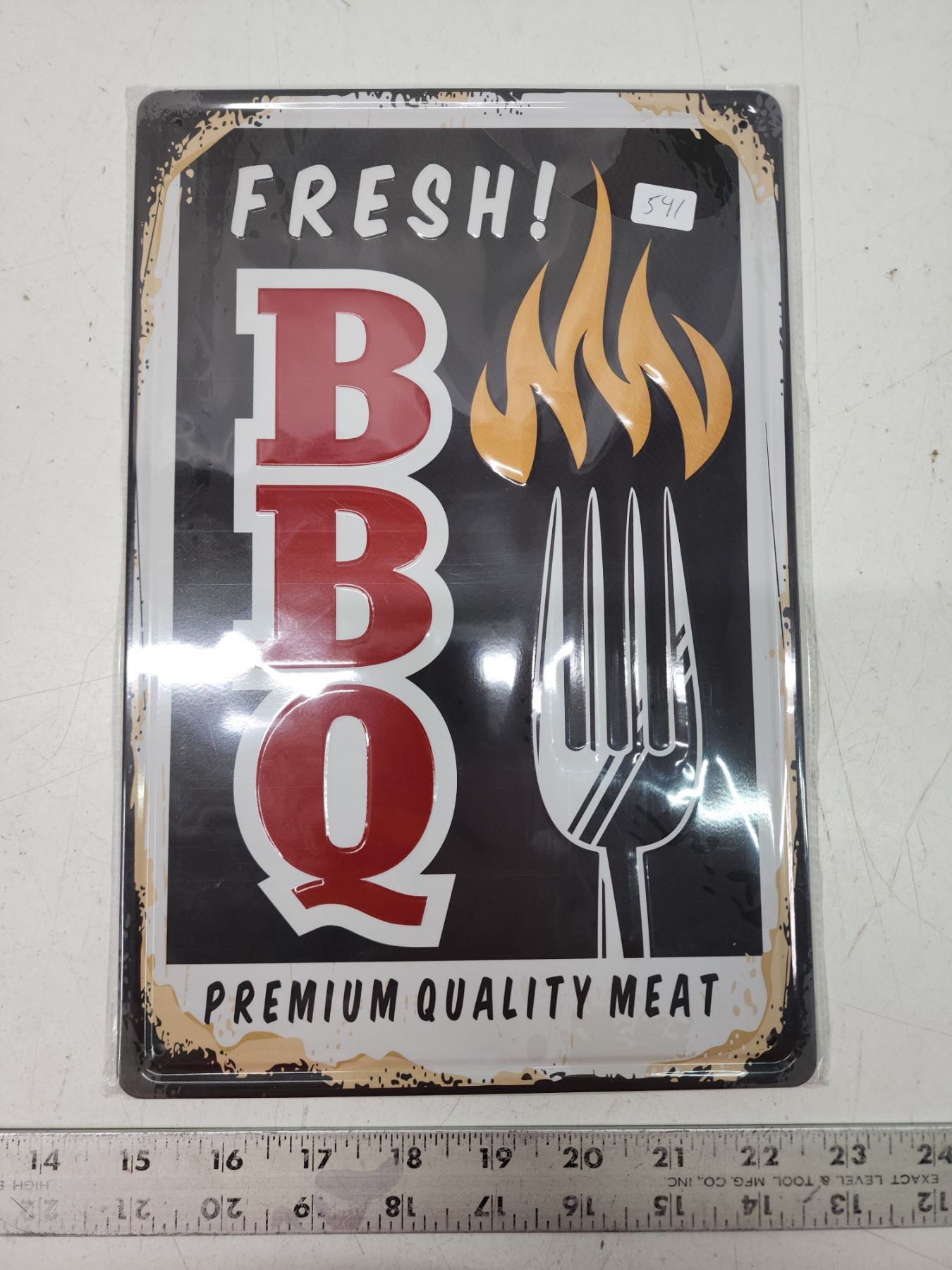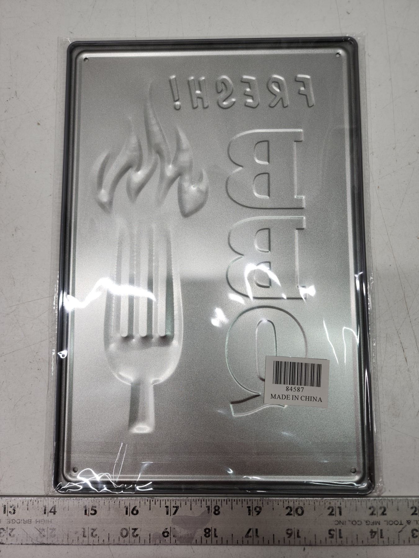 Sealed "BBQ" embossed tin sign - approx. 8"x10"