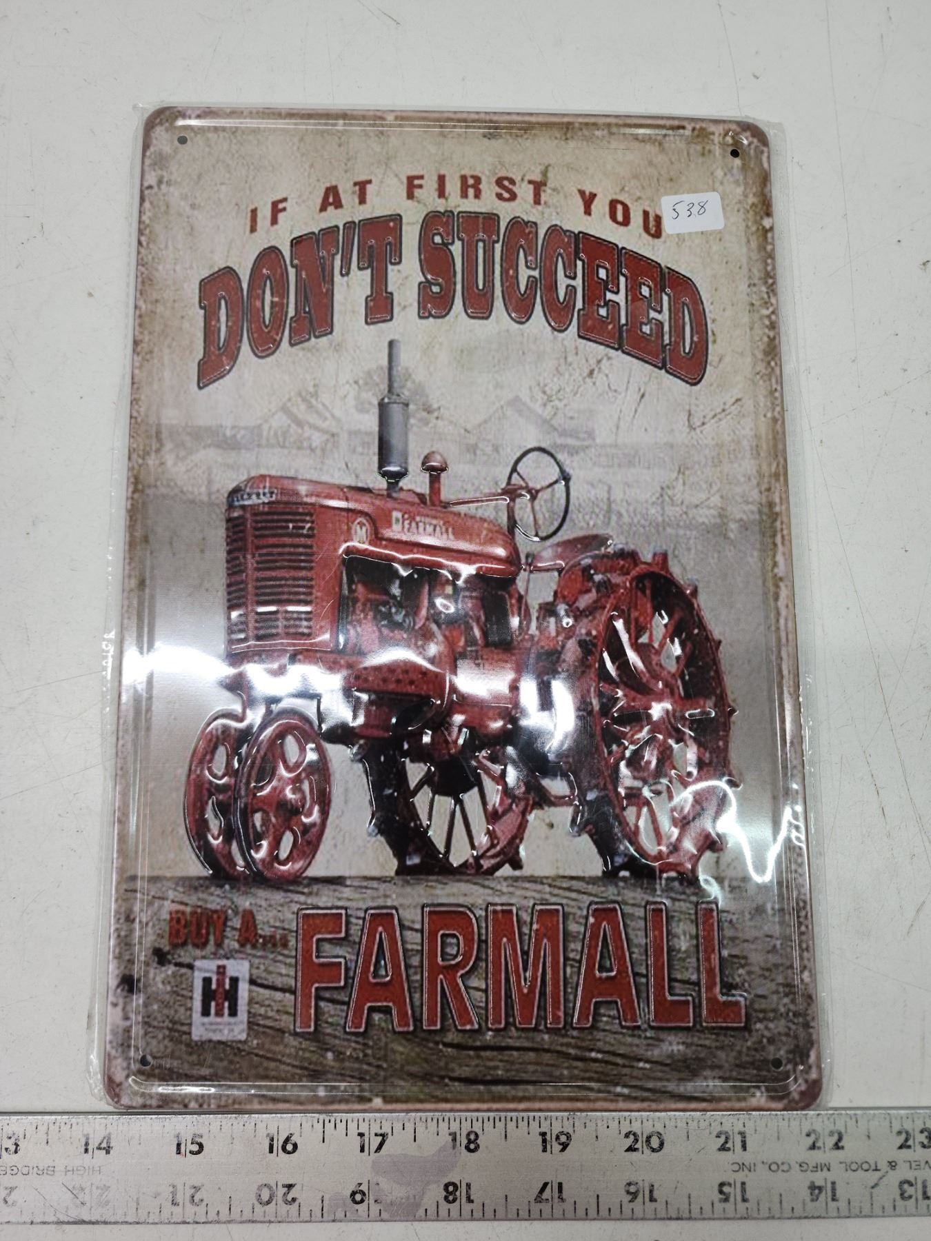 Sealed "Buy a Farmall" embossed tin sign - approx. 8"x10"