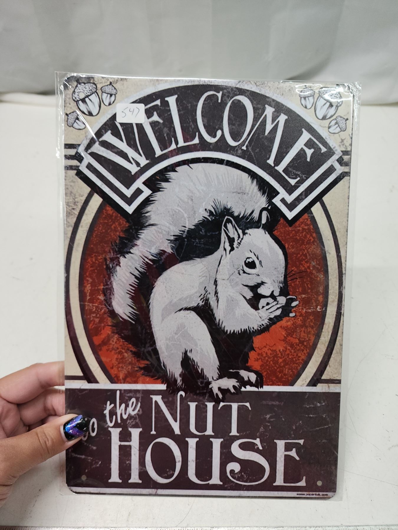Sealed "Nut House" tin sign - approx. 8"x10"