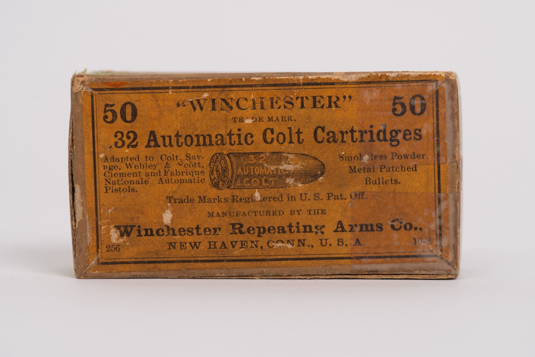Full Correct Sealed Winchester Box .32 ACP., Orange Label Dated "10-8".