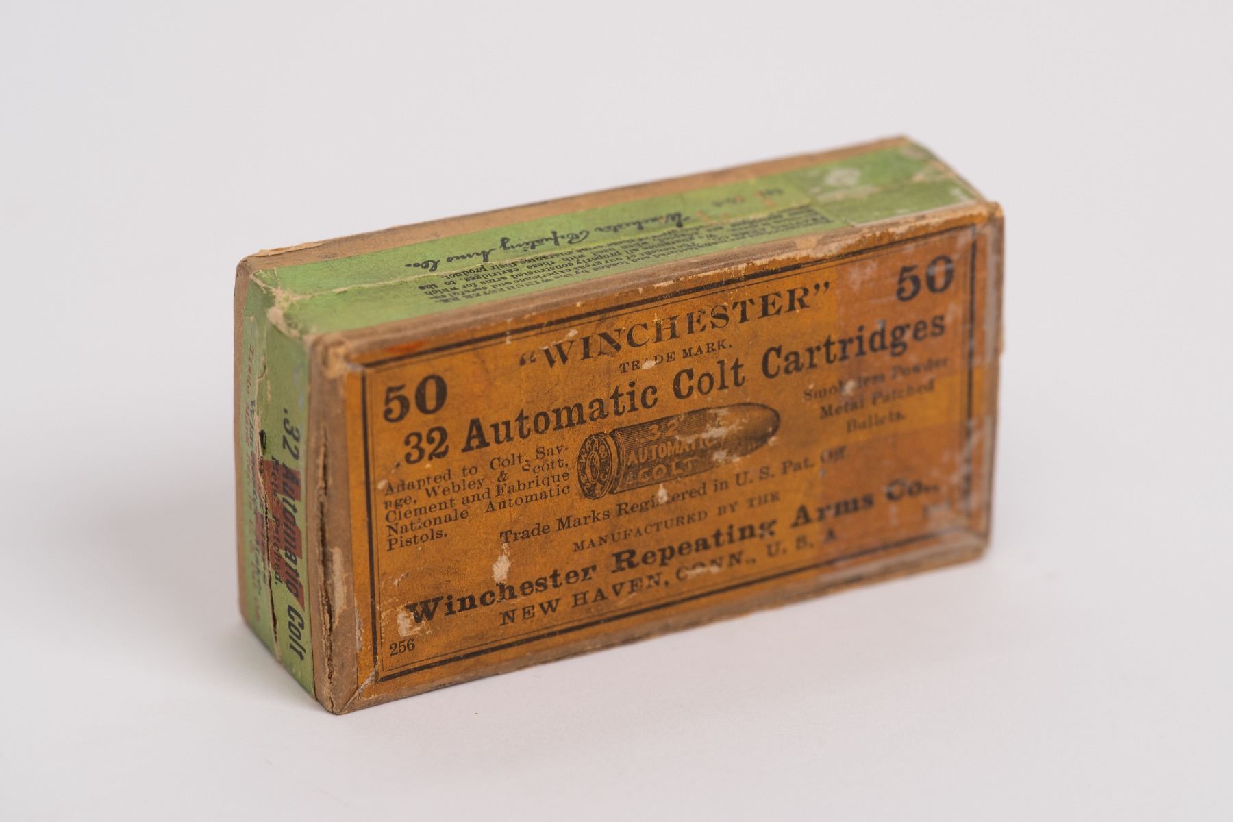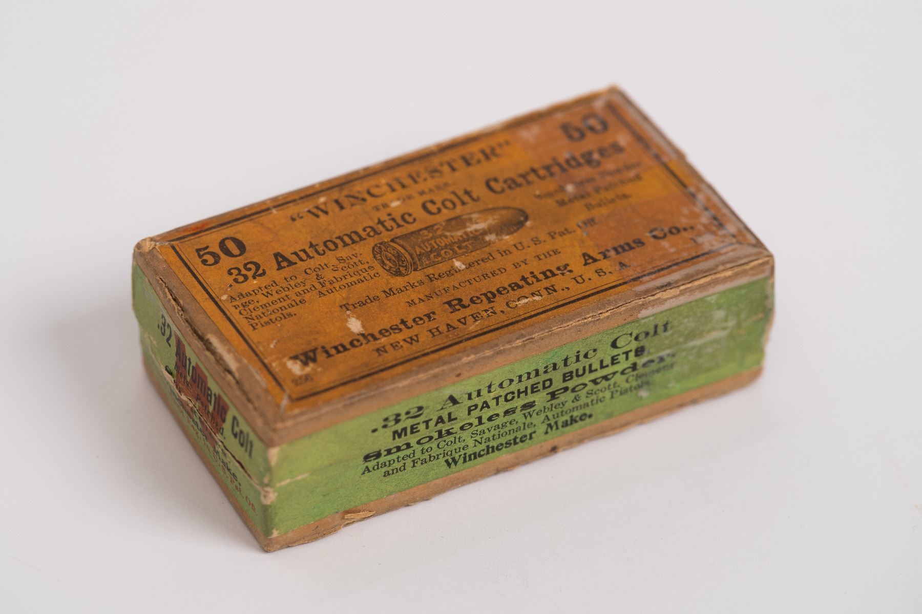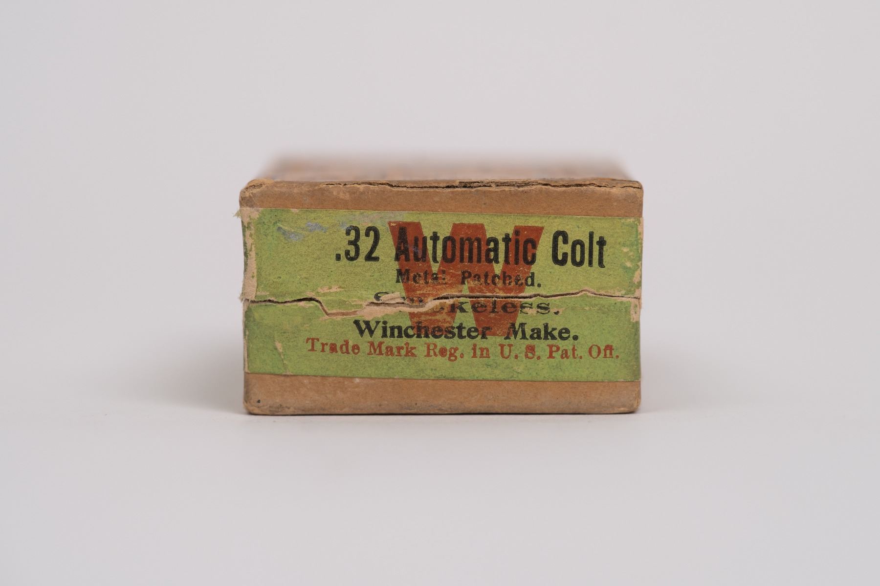 Sealed Vintage Ammunition Winchester Box .32 ACP., Orange Label Dated "10-8".