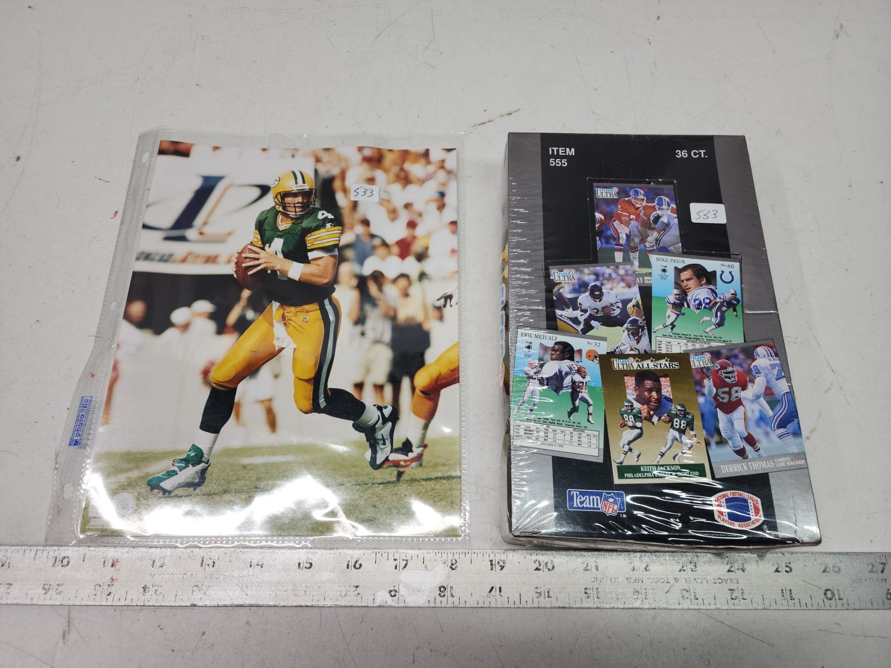 Sealed box - 91' Fleer Football cards - (Possible) Favre rookie card - & 8"x10" picture