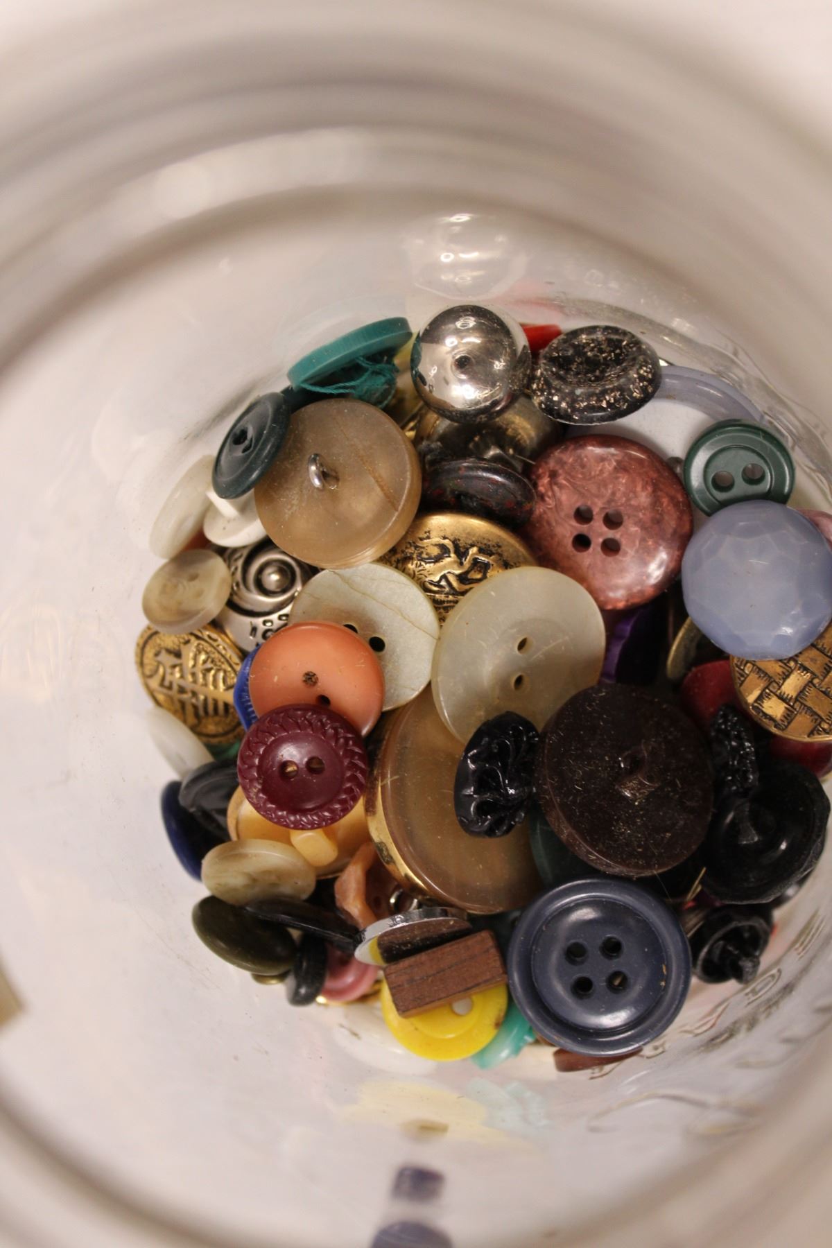 Sealer Jar of Buttons Varying in Styles, Colors, Sizes & Materials