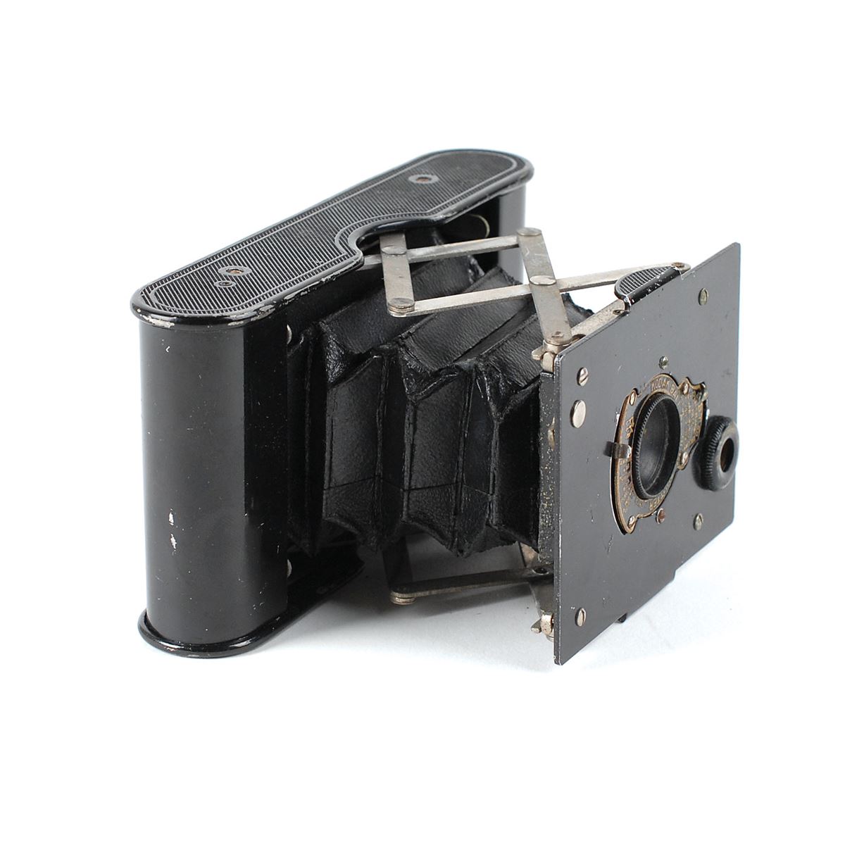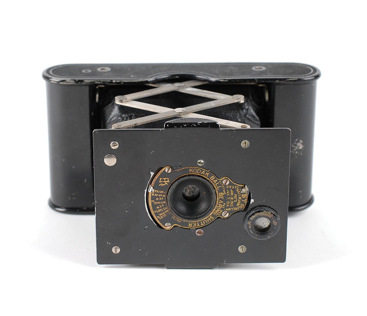 Flynn’s personally-owned and -used vintage black ‘Vest Pocket’ Kodak camera, measuring 4.5 x 2.5 x .75 with the bellows collapsed. In very good condition, with general wear from age. Accompanied by a small carrying case. Given Flynn’s future career as a photojournalist—an adventurous job that would lead to his disappearance—this camera is an especially desirable personal artifact. From the estate of Sean Flynn's mother, actress Lili Damita.