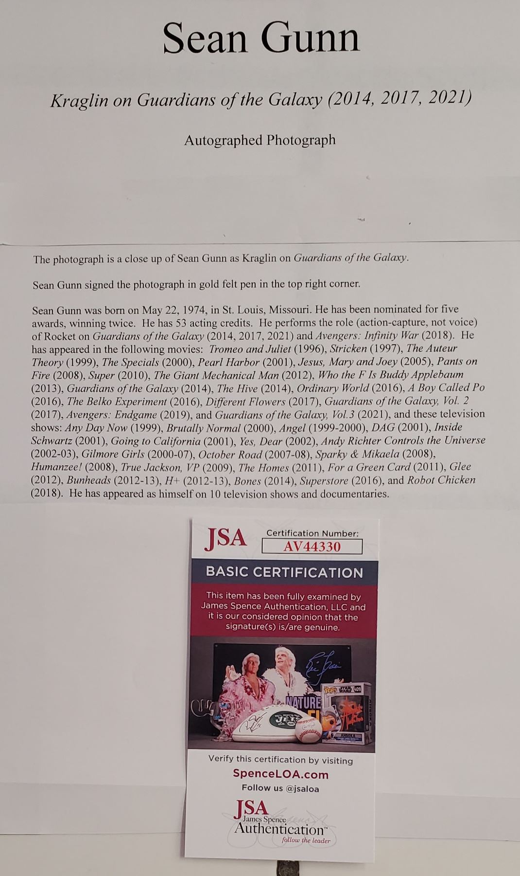 JSA COA No. AV44330.