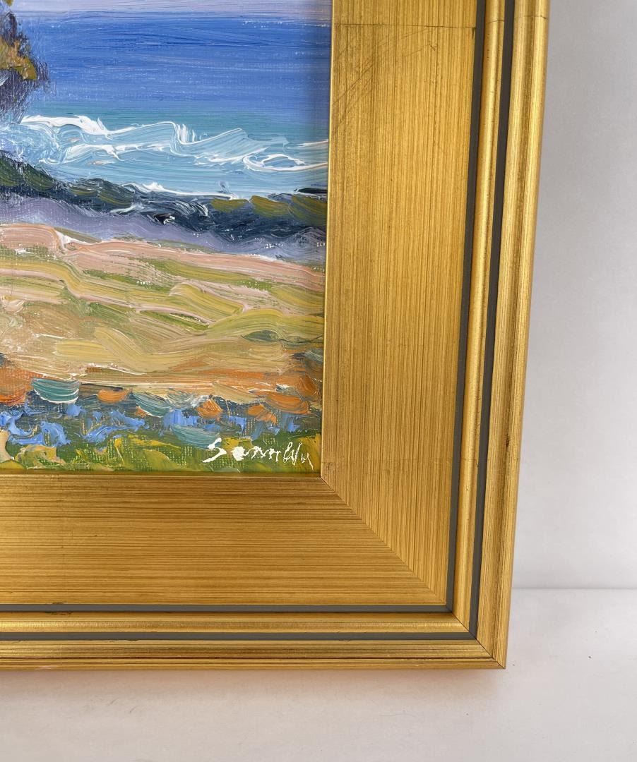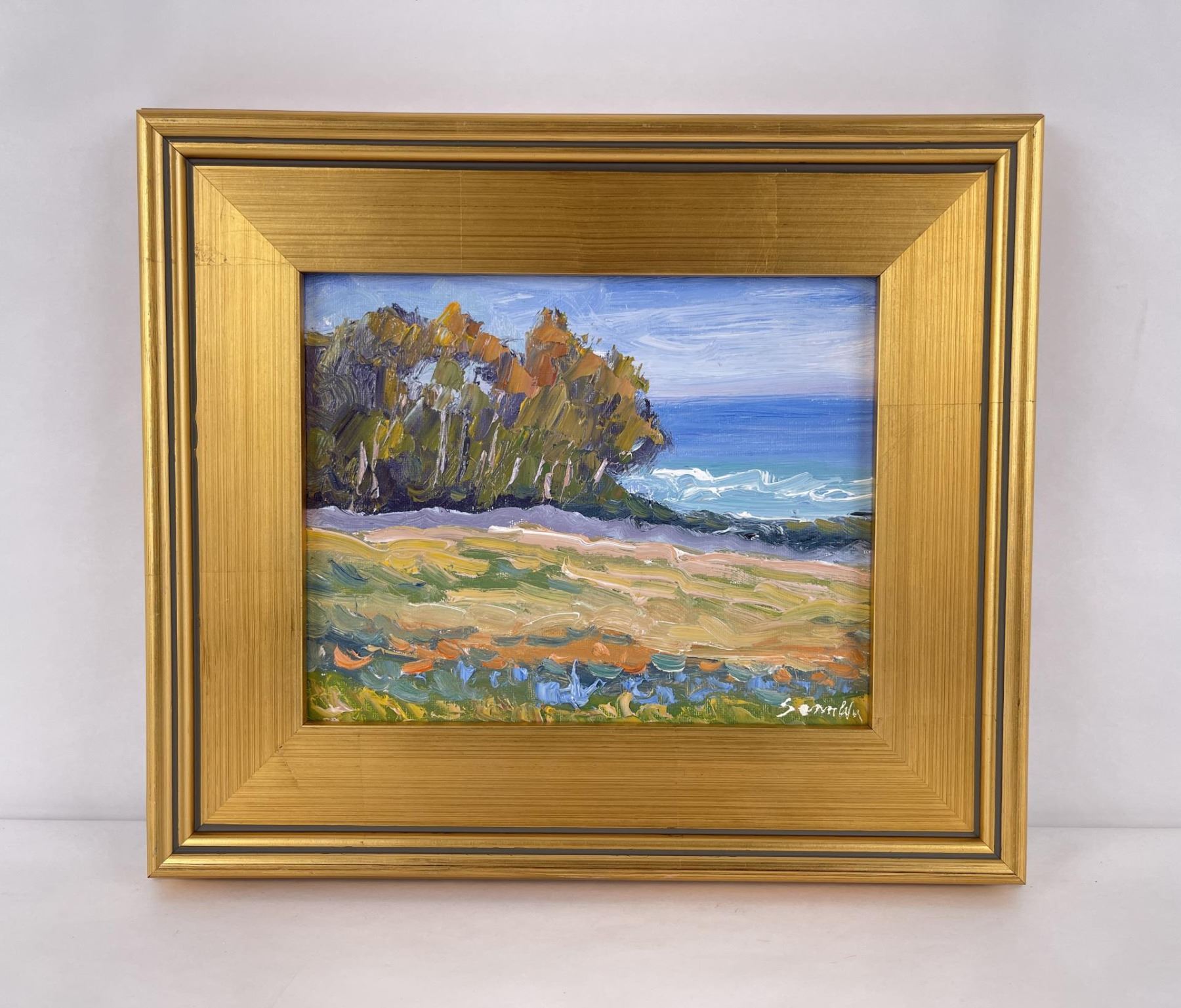 13" by 15" framed. Title is Ocean Breeze. Sean Wu was born in Beijing, China in 1954 and moved to the United States in 1987 to pursue a graduate degree in Computer Science. He worked as a software engineer for 30 years before retiring in 2020. In his free time, Sean is a self-taught painter who has been pursuing his passion for art since childhood. While working full-time as a software engineer, Sean dedicated his evenings, weekends, and holidays to painting. He began his artistic journey as a realist portrait artist and has since migrated to realist-impressionist landscape animal portraiture. Sean has experimented with various techniques, from using a palette knife to different brush styles, and has explored different color palettes, ranging from realism to impressionism. His favorite painting subject is horses, and he strives to capture their beauty and strength in his work. Since retiring, Sean now paints as a full-time artist daily, with a focus on creating and sharing his art with the world. He plans to continue painting for the rest of his life, leaving behind a legacy of stunning artwork.