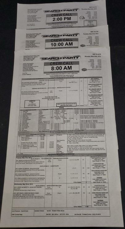 "Search Party" 2014 Call Sheets Starring Adam Pally, T.J. Miller, Thomas Middleditch May 20th - 23