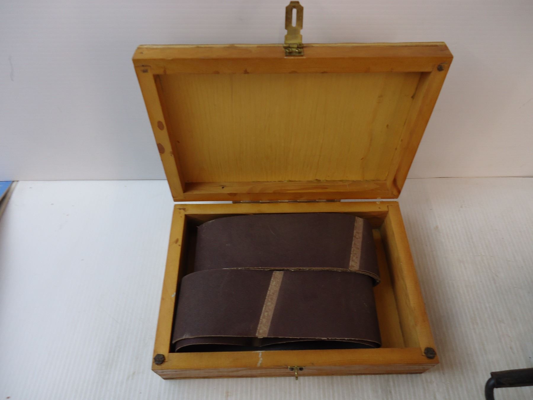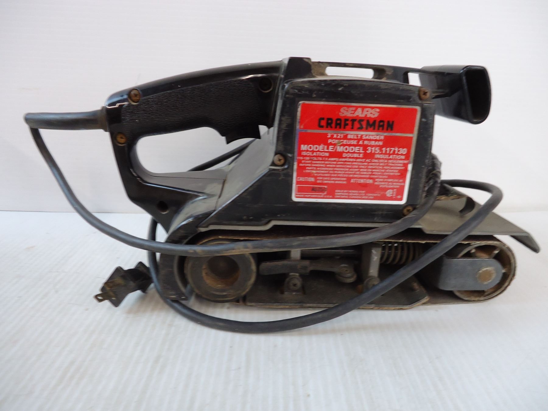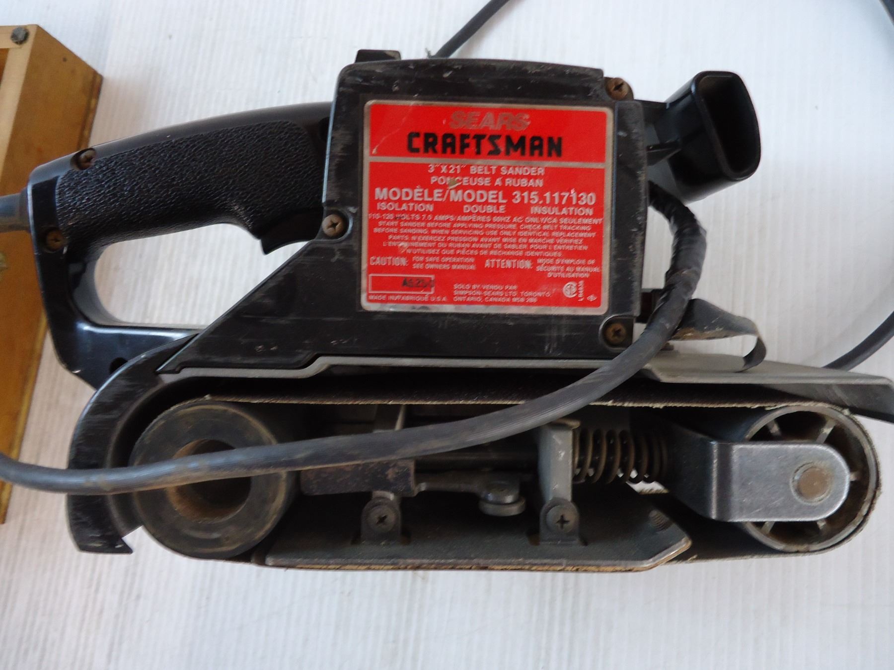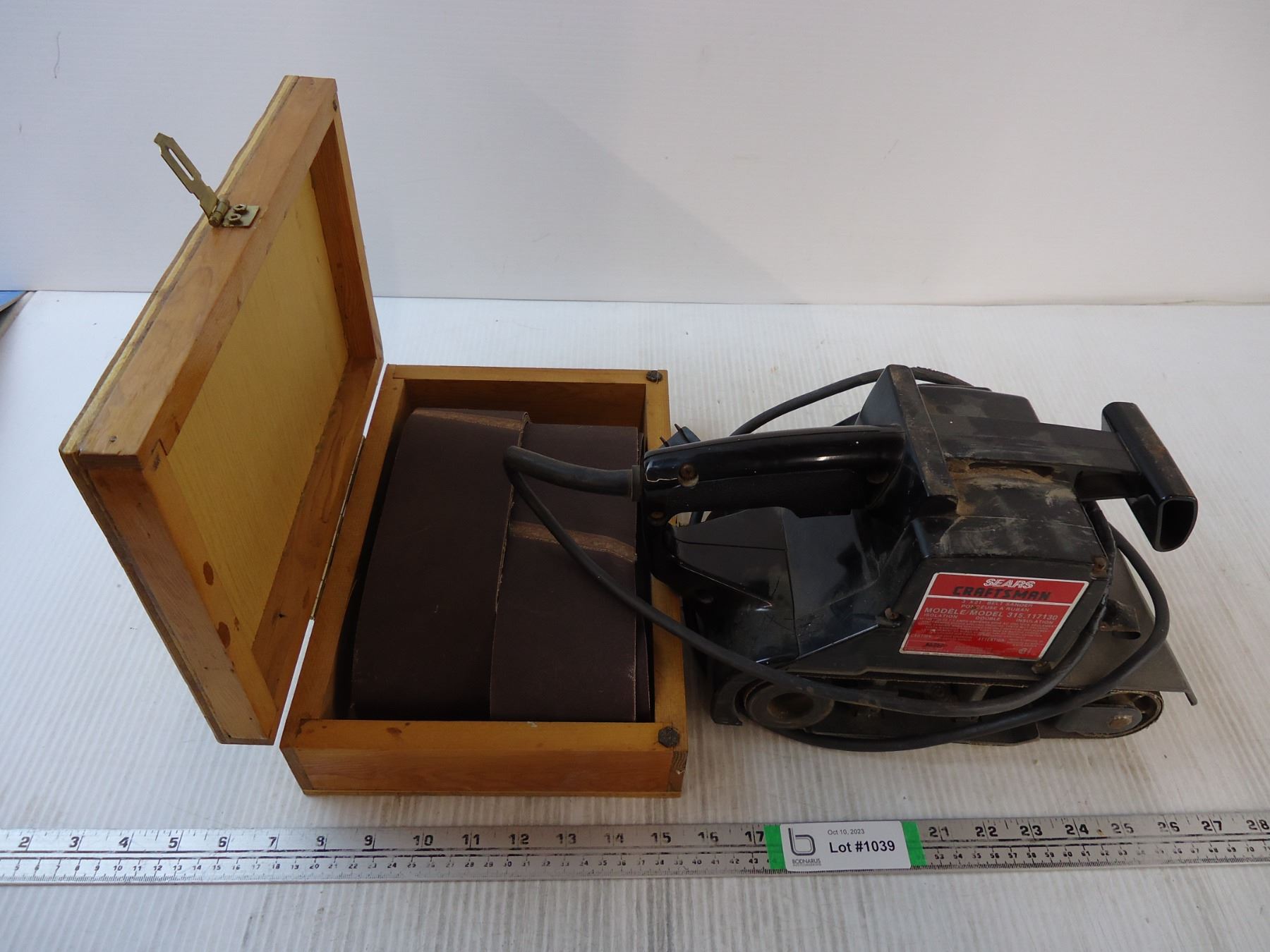 Sears Craftsman 3"x21" Belt Sander-powers on with container of sand paper