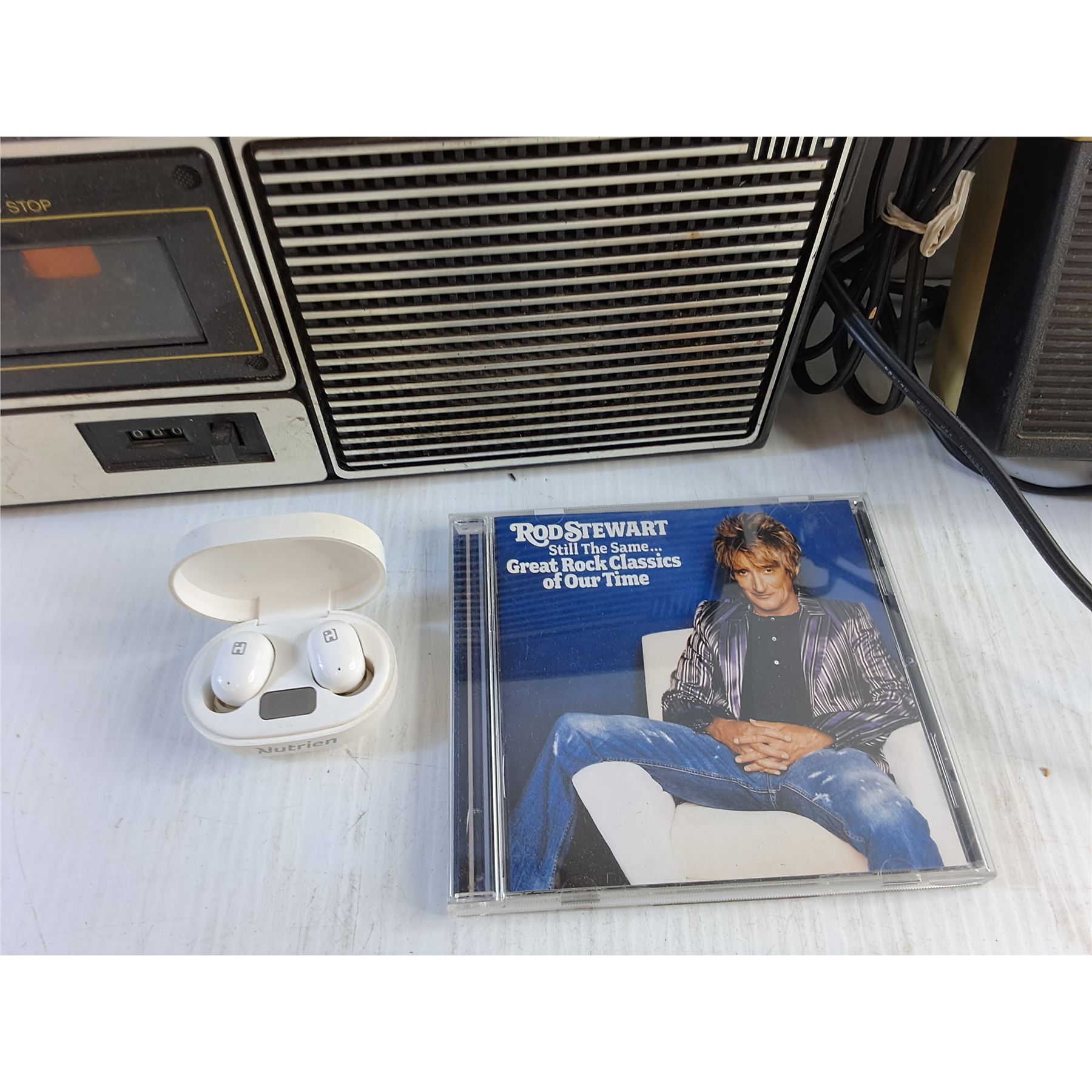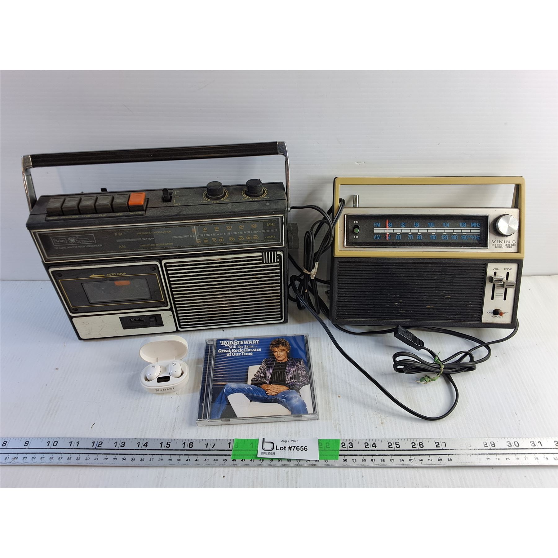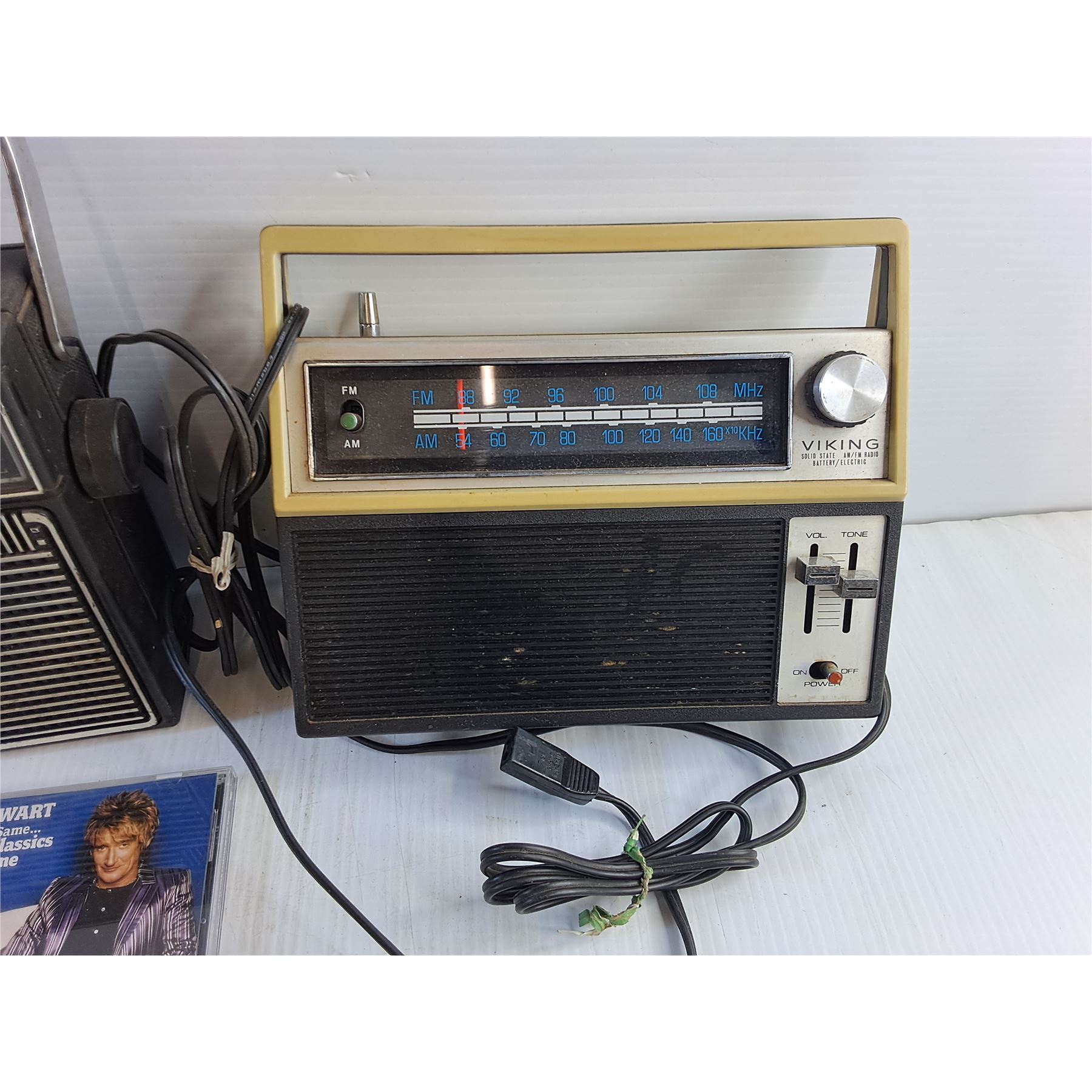 Sears De Luxe AM/FM Radio Recorder, Viking Radio, Rod Steward CD and Nutrien Ear Buds - As Is