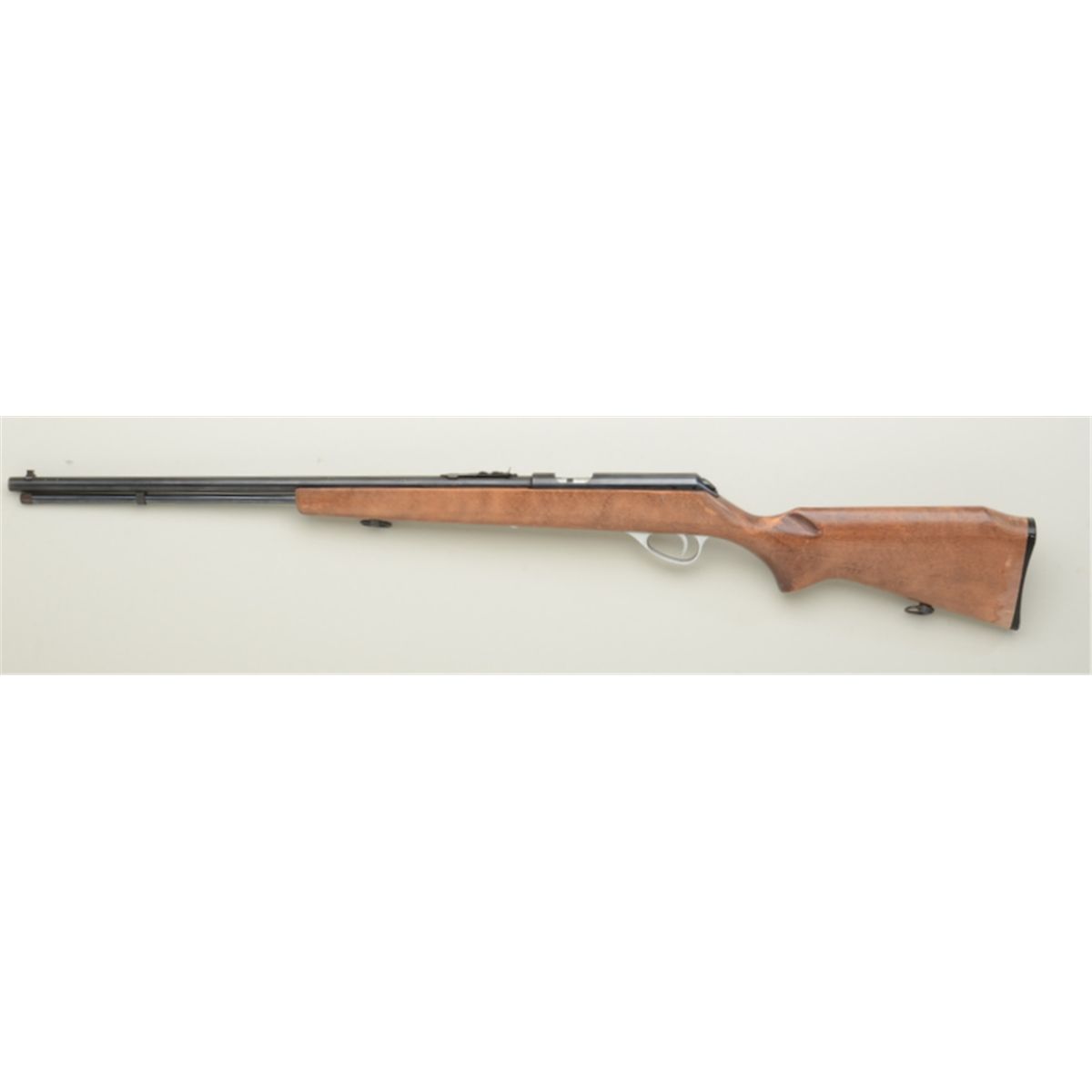 Sears, Roebuck Model 43 bolt-action rifle, .22 short, long and long rifle cal., 22” round barrel, blue finish, wood stock, sling swivels, #NVSN. This gun is in overall good condition showing considerable original bluefinish with some surface spots of erosion, good bore, action, markings and wood stock with some scattered storage mars. Est.: $50-$100.