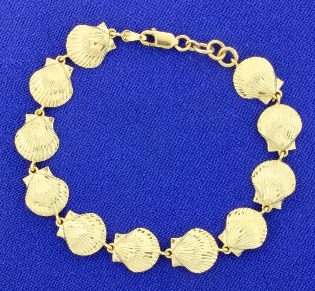 In 14K yellow gold, it is 7 1/2 inches long and has a lobster clasp. 10.2g