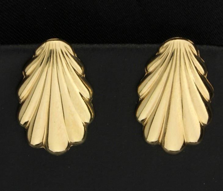 They are 14K yellow gold and are 7/8 inch long, they have friction backs. 2.1g