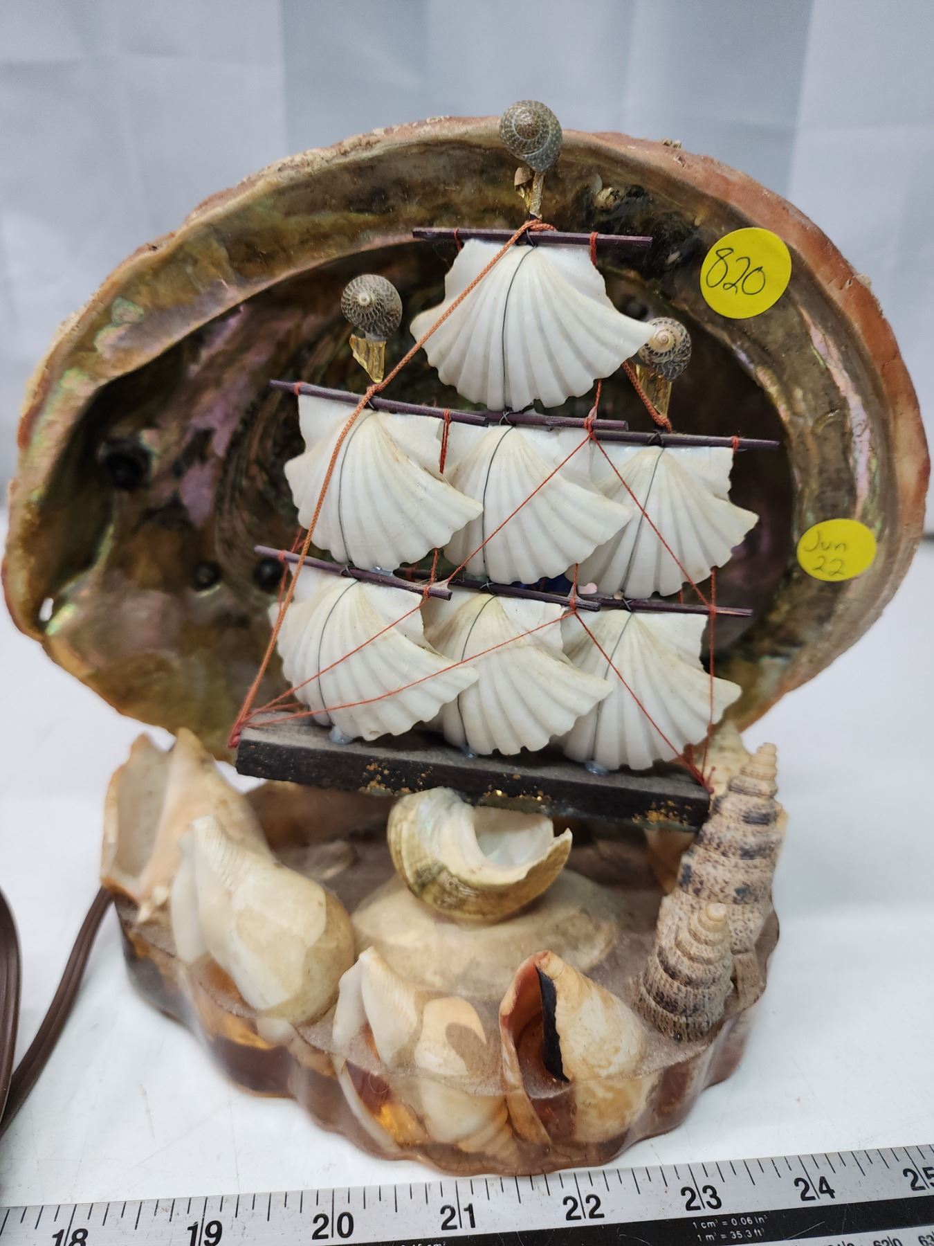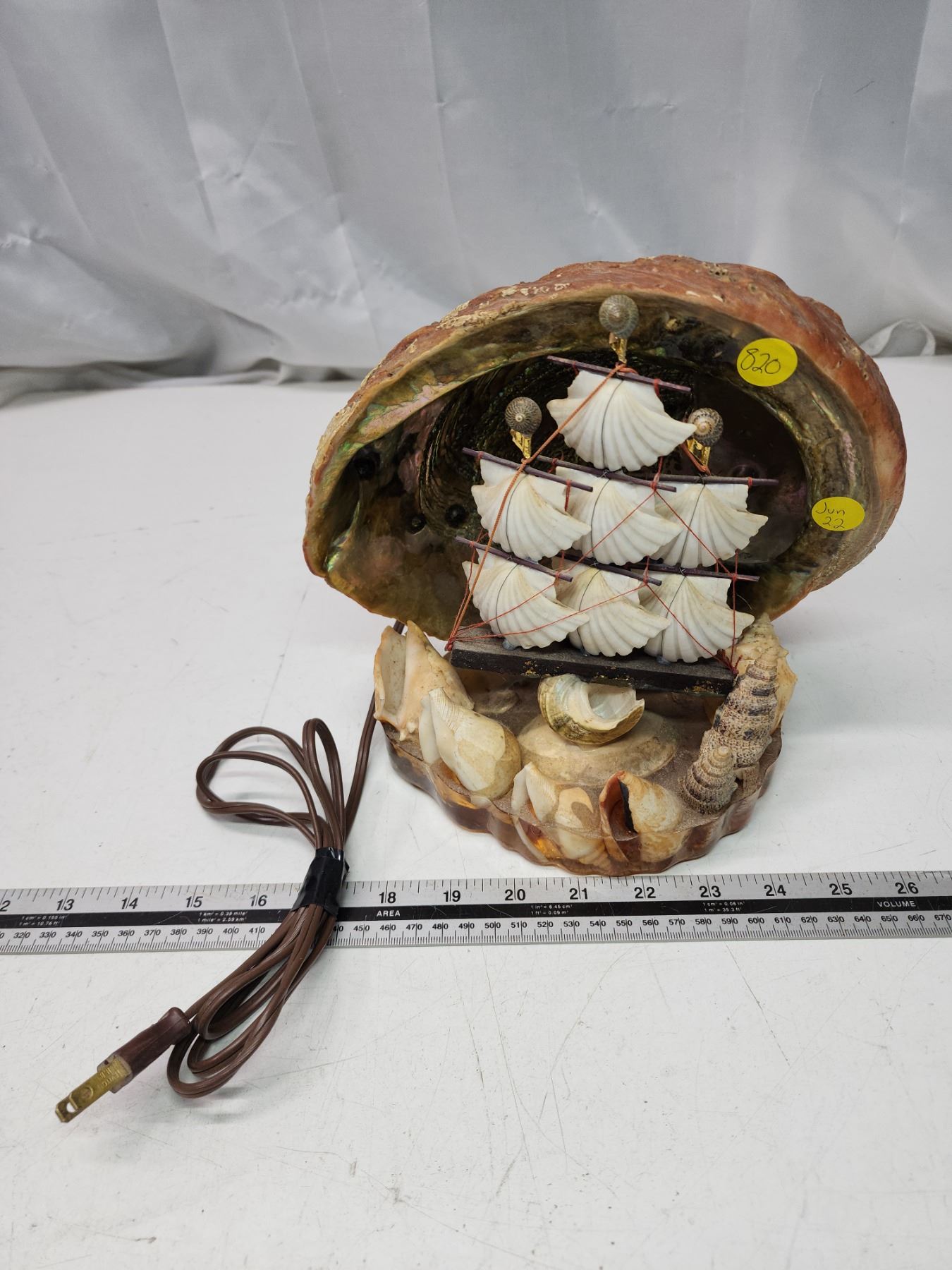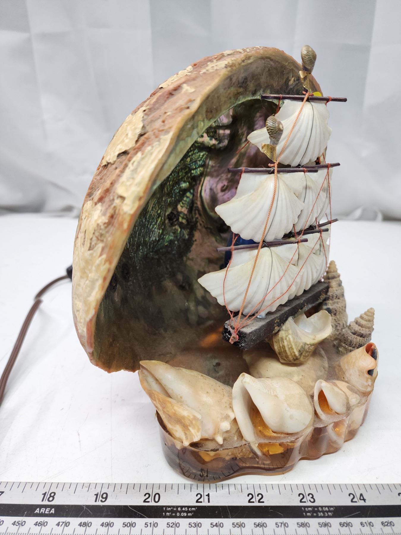 Seashell sail ship lamp, works - 8"H