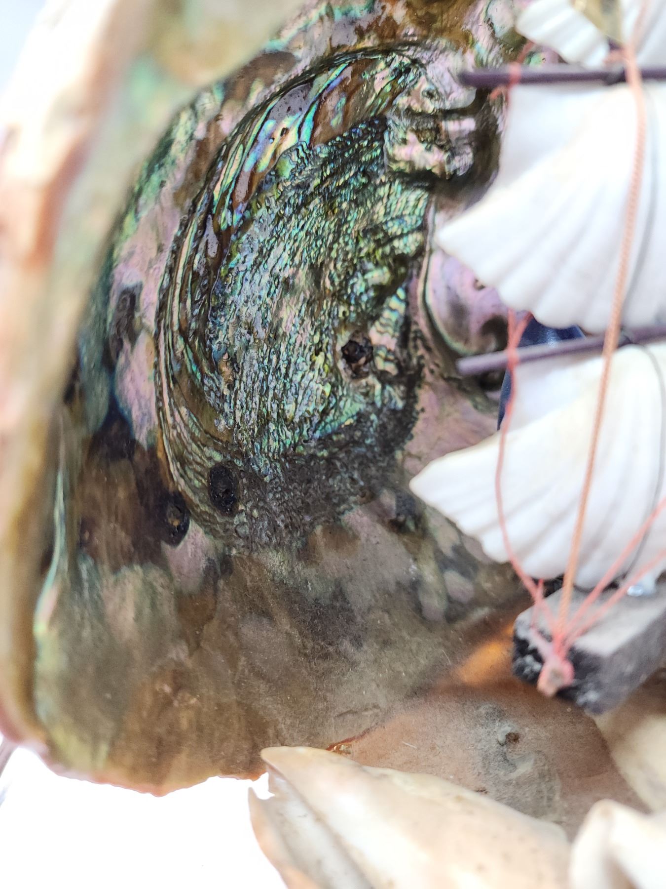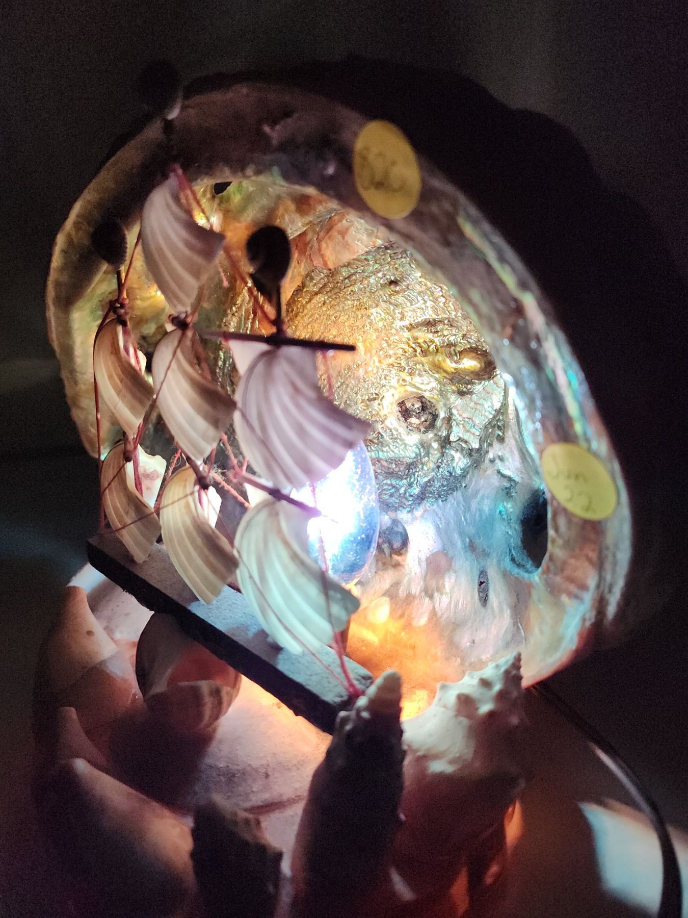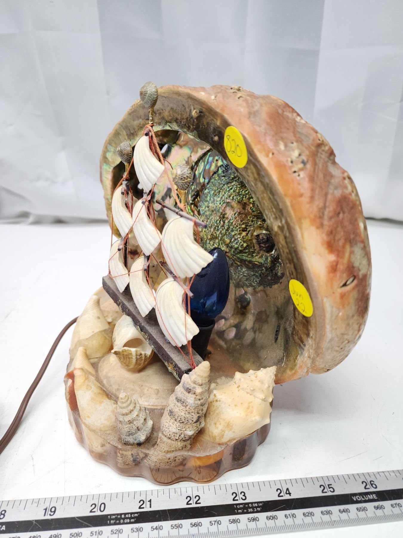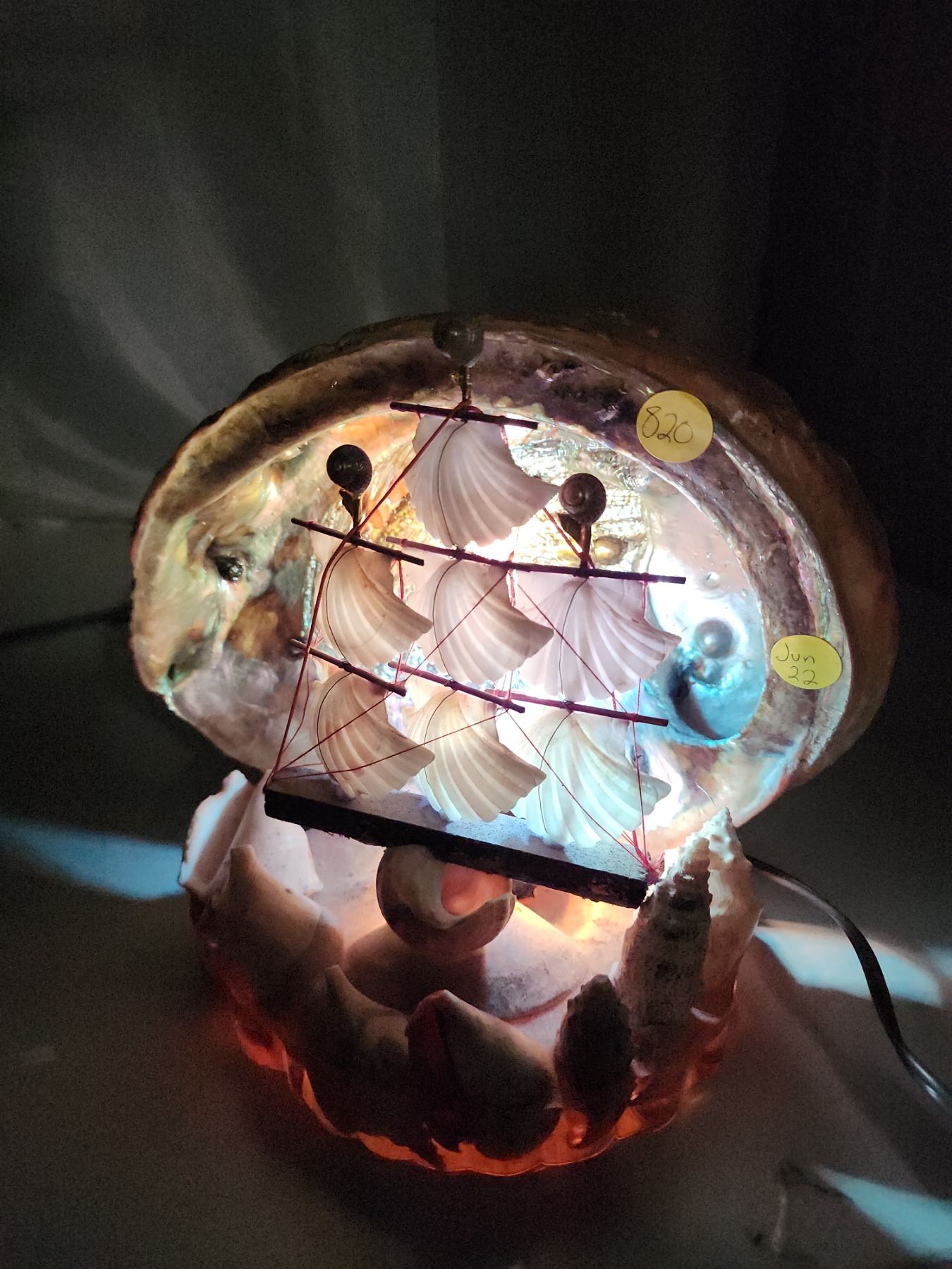 Seashell sail ship lamp, works - 8"H