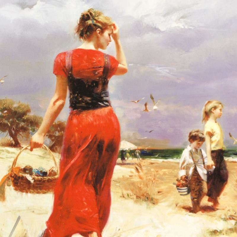 "Seaside Gathering" is a limited edition giclee on paper by Pino (1939-2010). The piece comes numbered and is hand signed by the artist. Includes Certificate of Authenticity. Measures approximately 16 x 16" (image).