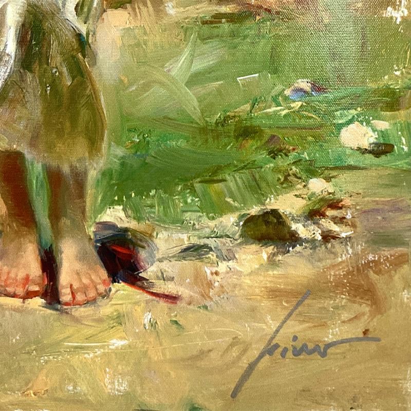 "Seaside Retreat" is a limited edition giclee on canvas by Pino (1939-2010), numbered 23/295 and hand signed by the artist. Includes Certificate of Authenticity. Measures approx. 28" x 28" (image).