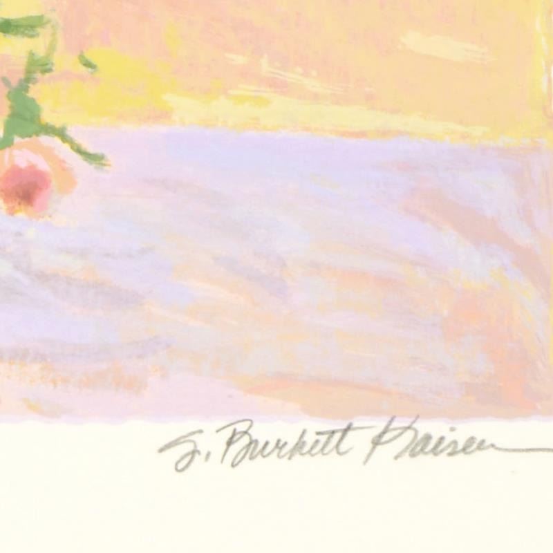 "Seaside Roses" is a limited edition giclee on paper by S. Burkett Kaiser, numbered and hand signed by the artist. Includes Letter of Authenticity. Measures approx. 15" x 15" (border), 12" x 12" (image).