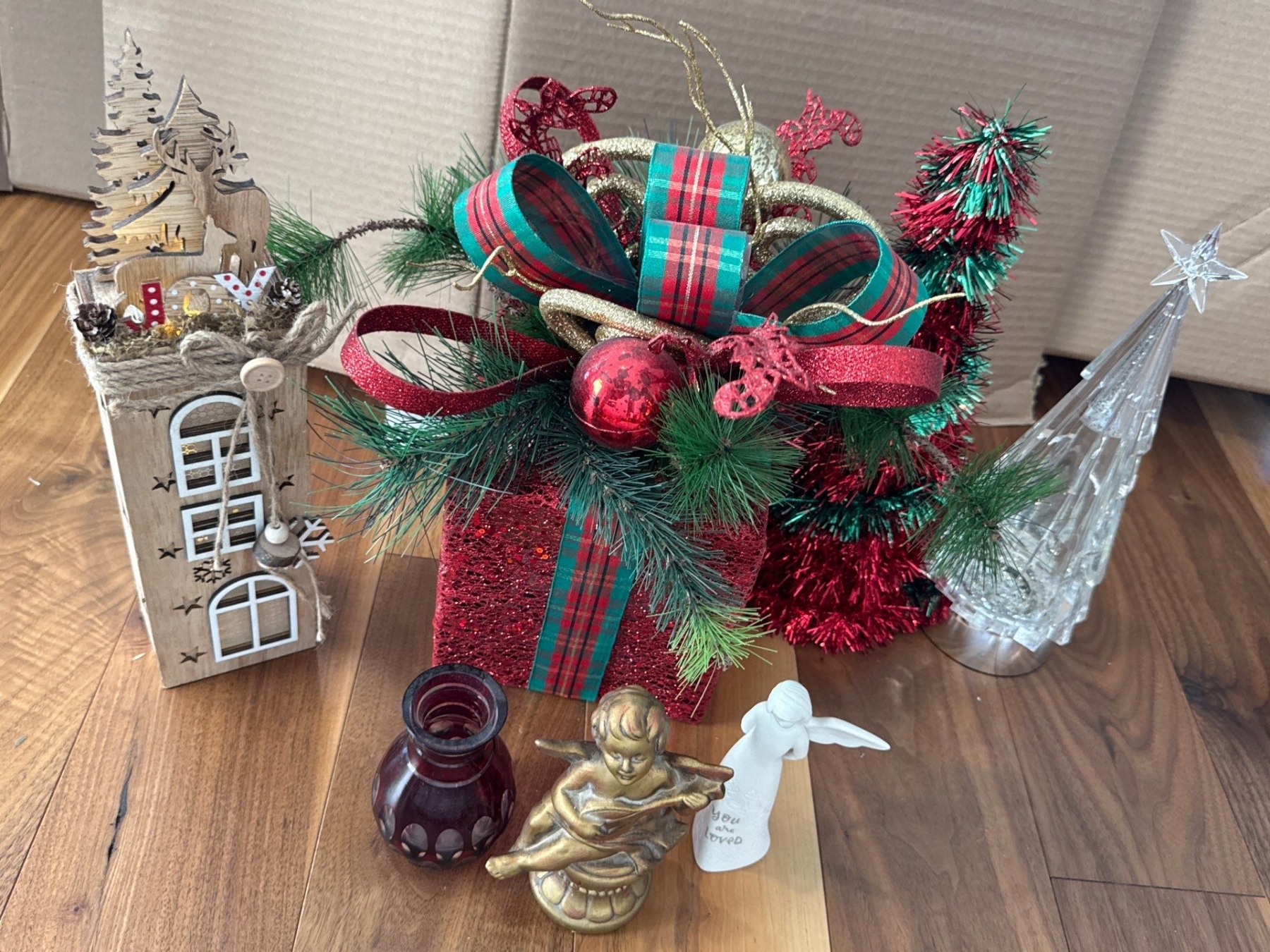 Seasonal Assortment - Ruby Red Vase 5T w/ Holiday Decor & More