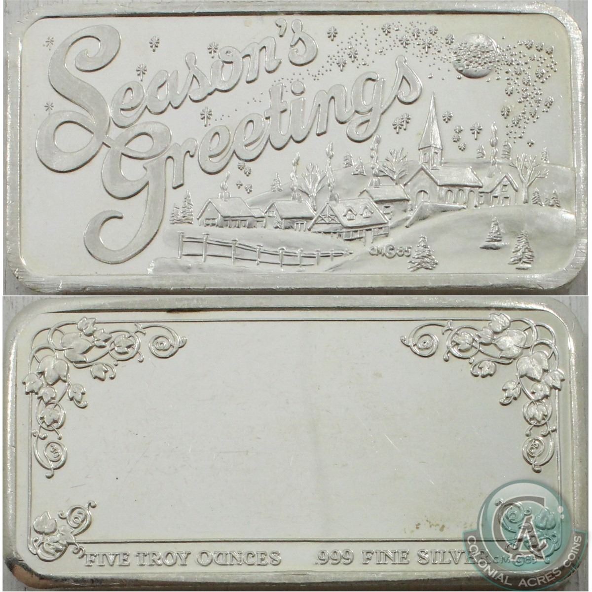 Seasons Greetings 5 oz .999 Fine Silver Bar with spot for engraving (Tax Exempt)