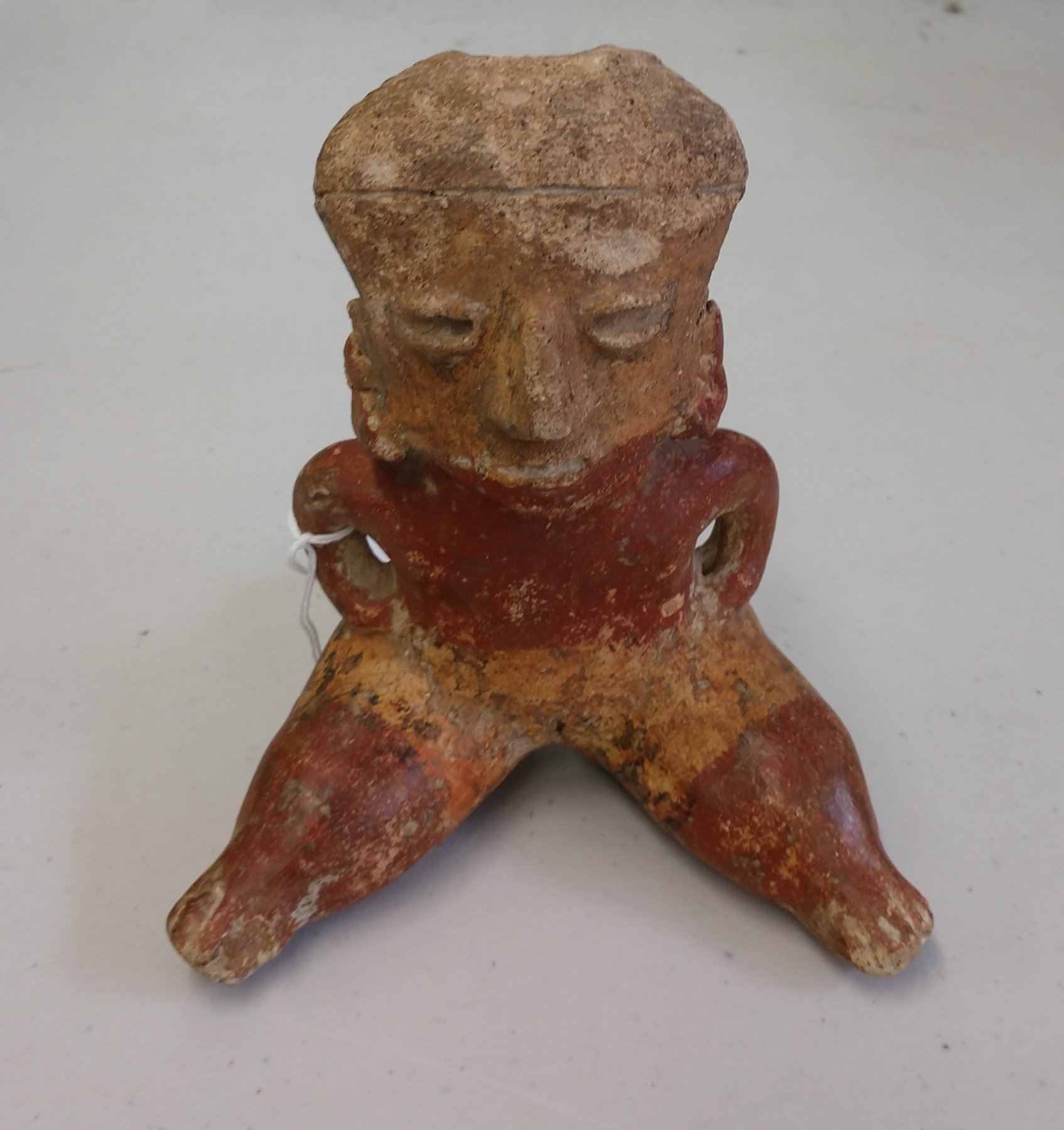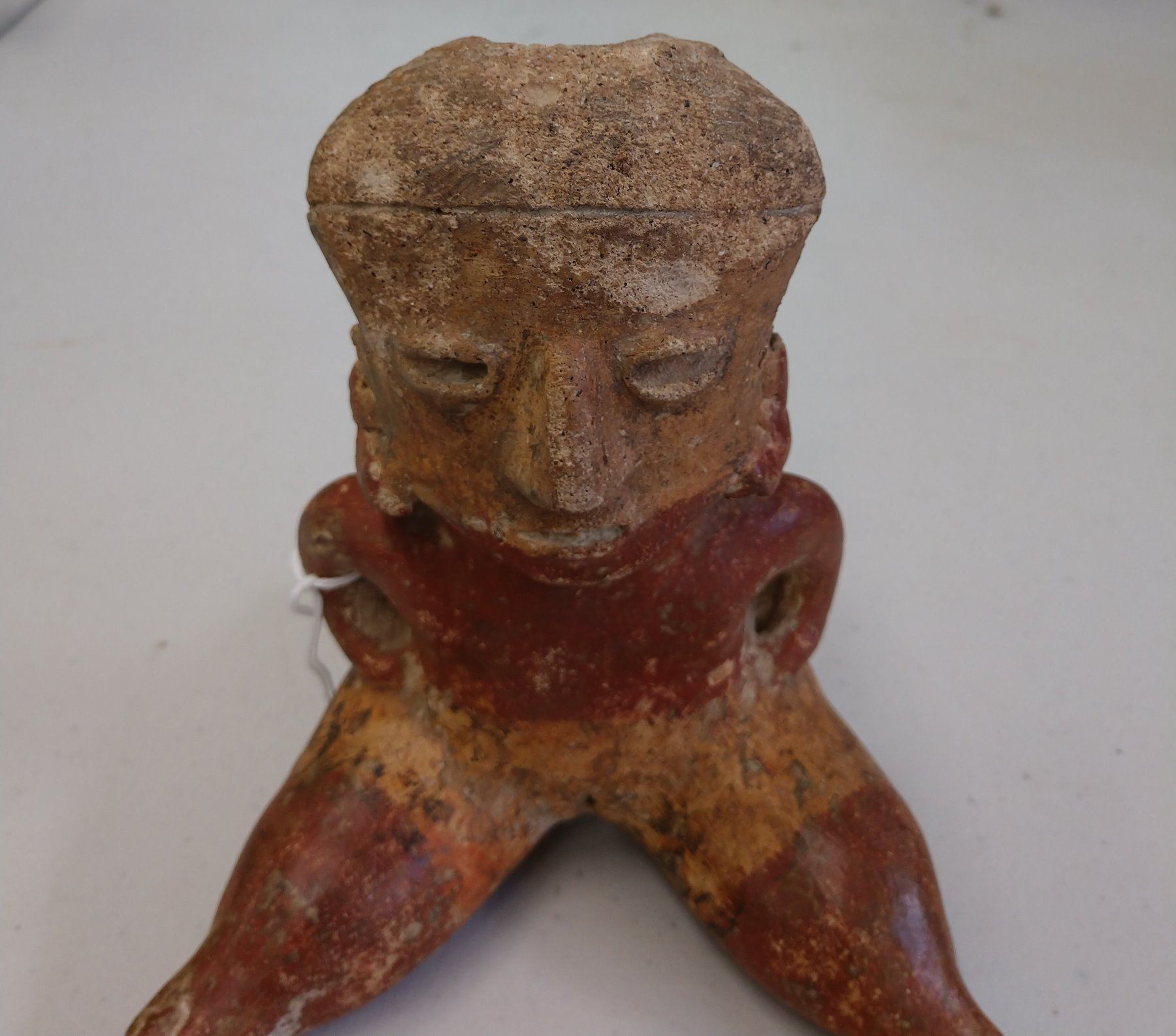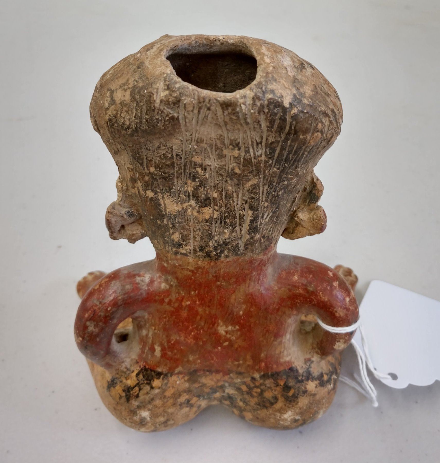 Seated Chinesco Figure, c. 1700 years old. Made of clay and paint, the item measures 6" x 5 1/2" x 5". Nayarit, Mexico. Classic piece. From an old, 1960s California collection. Condition: Good, see images. Shipping: $45.00 USA estimate only, w/insurance and signature.