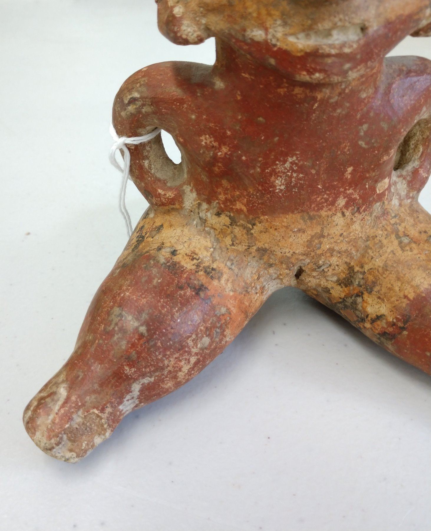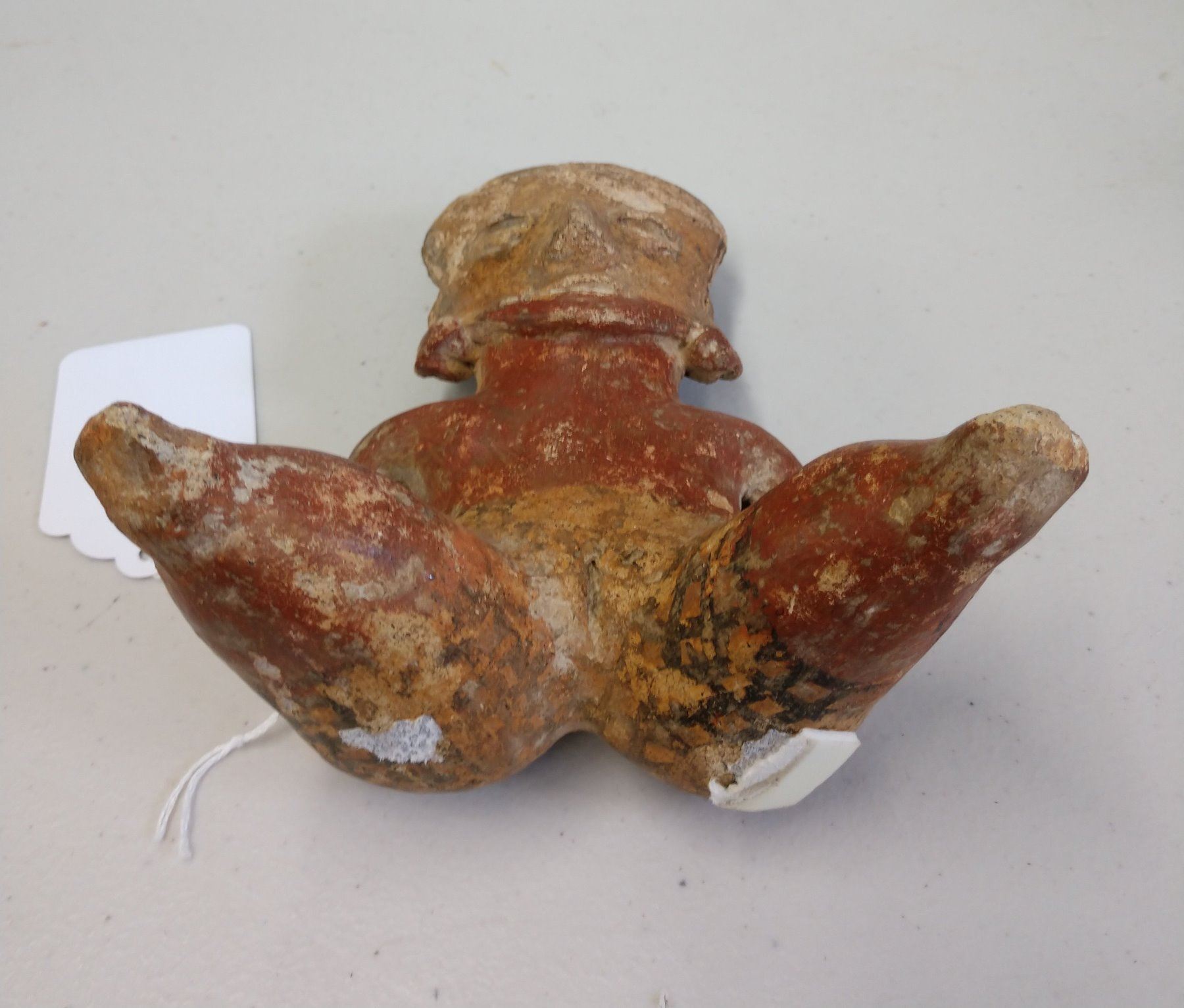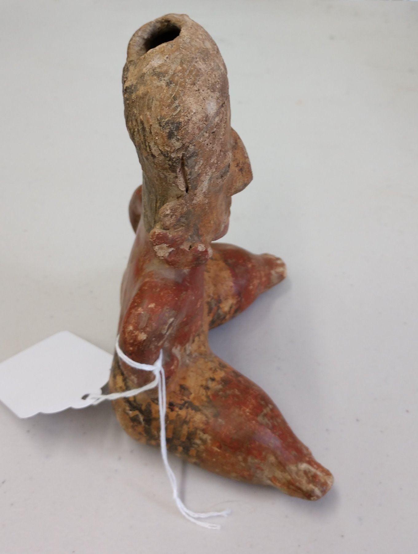 Seated Chinesco Figure, c. 1700 years old. Made of clay and paint, the item measures 6" x 5 1/2" x 5". Nayarit, Mexico. Classic piece. From an old, 1960s California collection. Condition: Good, see images. Shipping: $45.00 USA estimate only, w/insurance and signature.