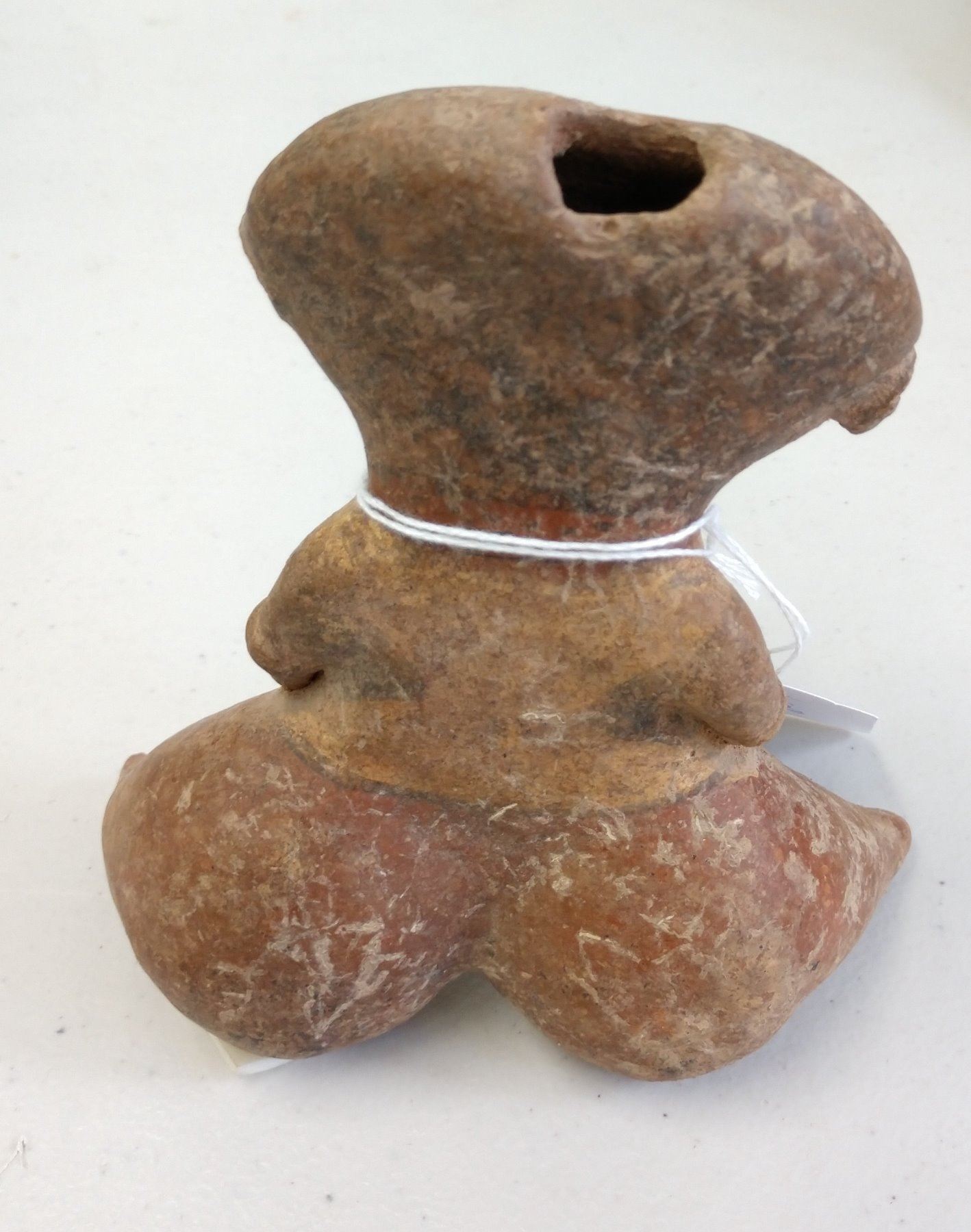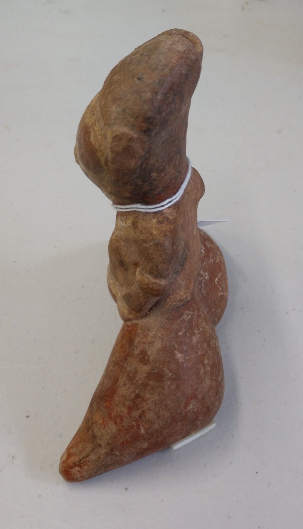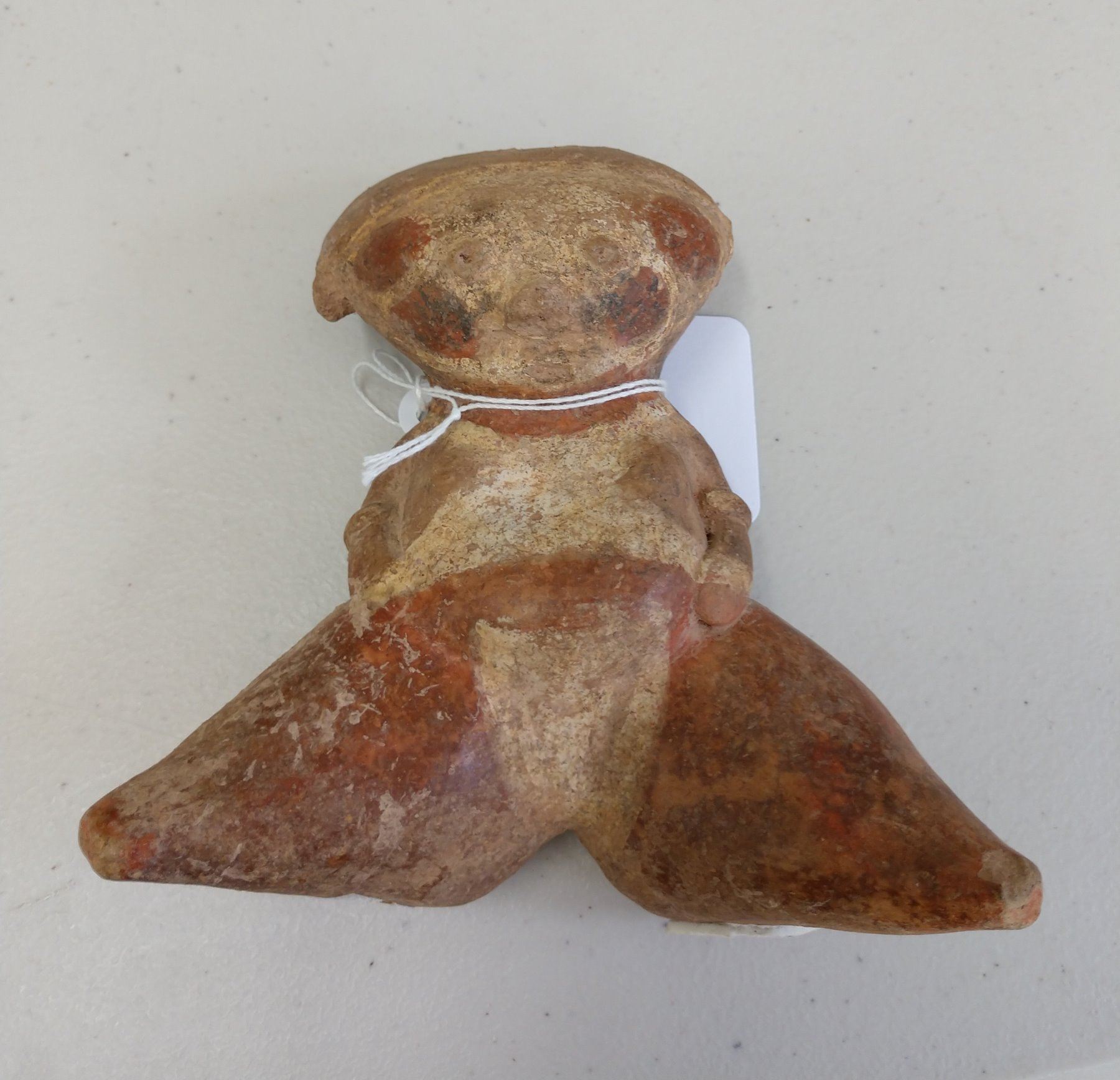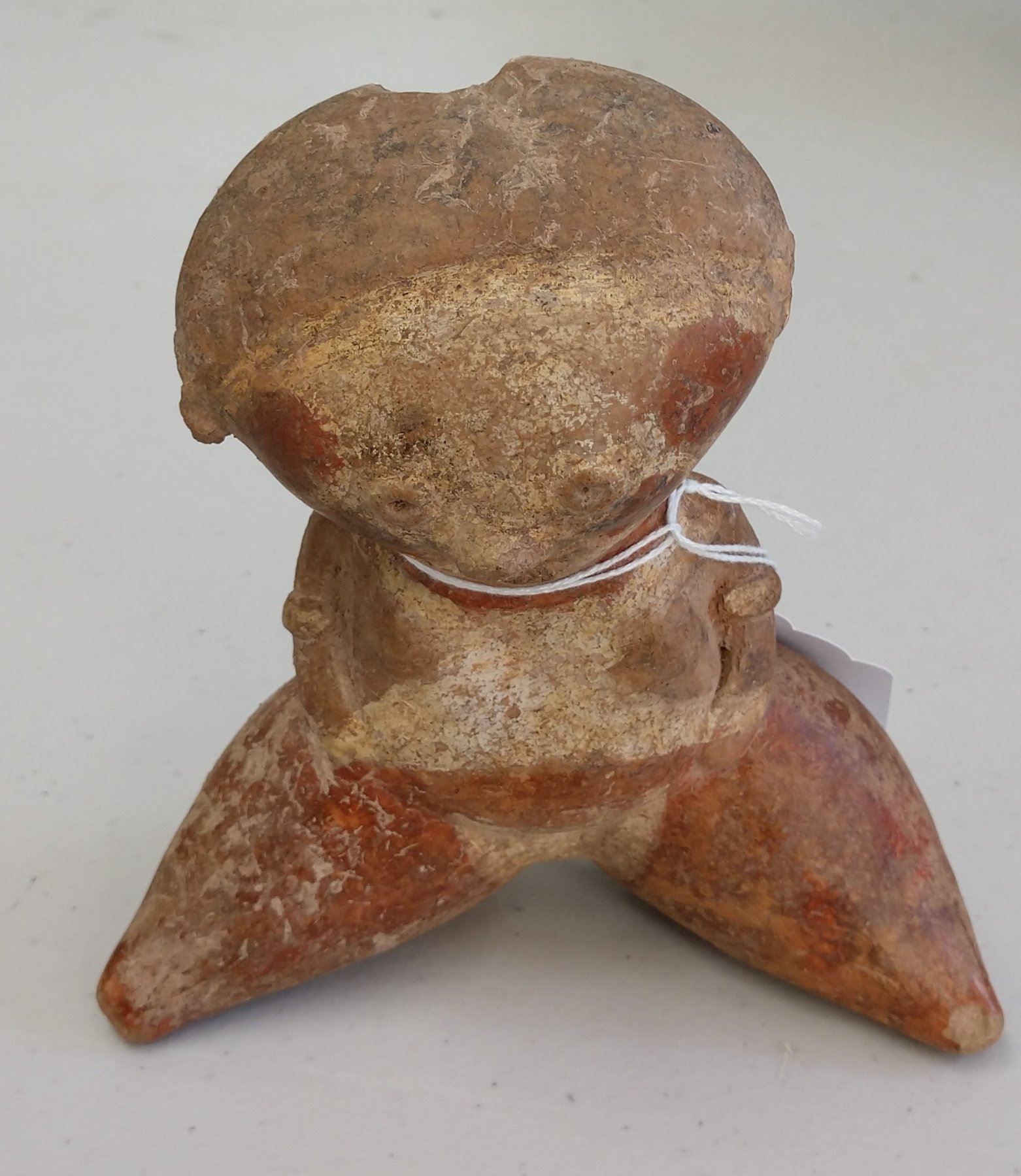 Seated Chinesco Figure, c. 1700 years old. Made of clay and paint, the item measures 6" x 5" x 4". Nayarit, Mexico. Classic piece. From an old, 1960s California collection. Condition: Good, minor scuffs, see images. Shipping: $45.00 USA estimate only, w/insurance and signature, due to value.