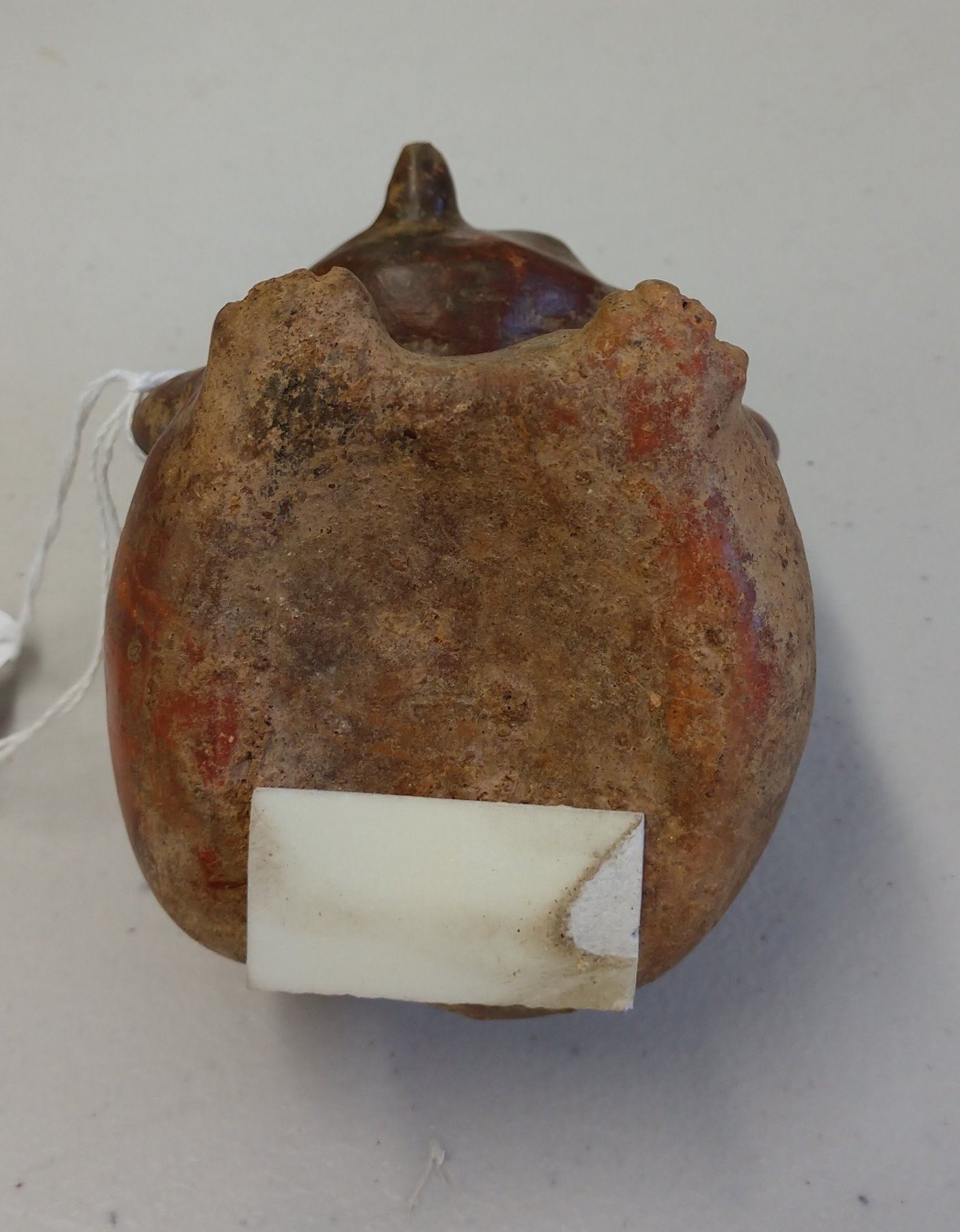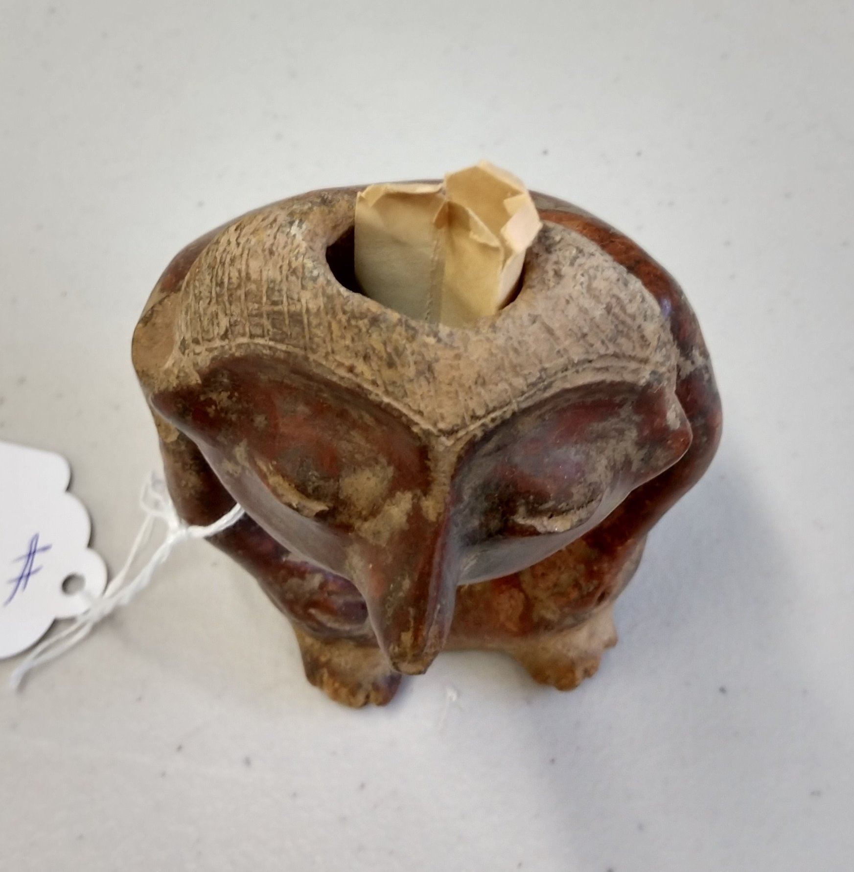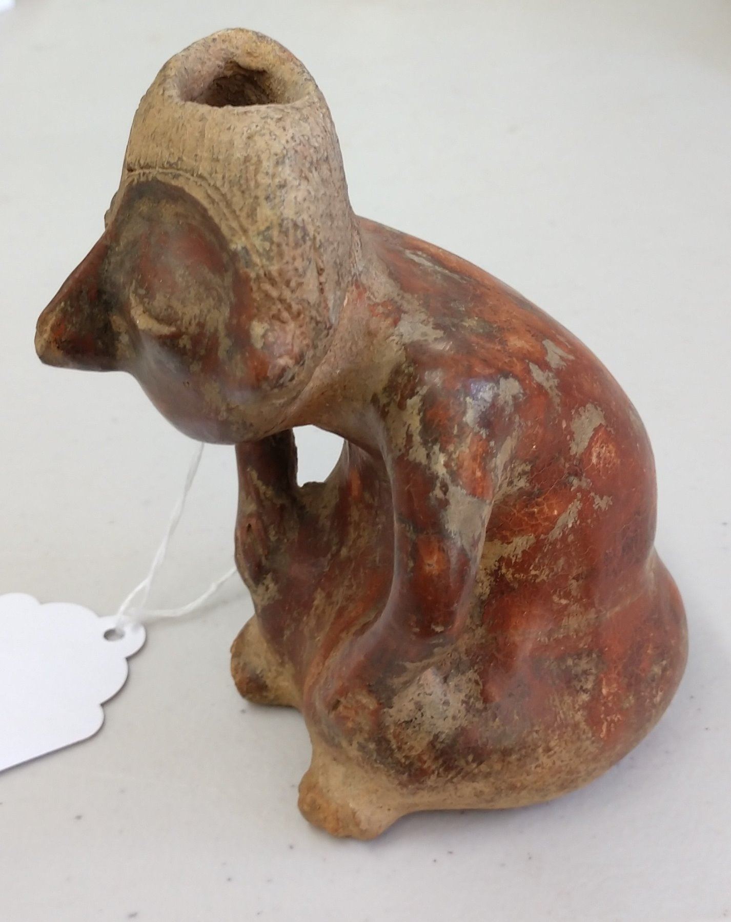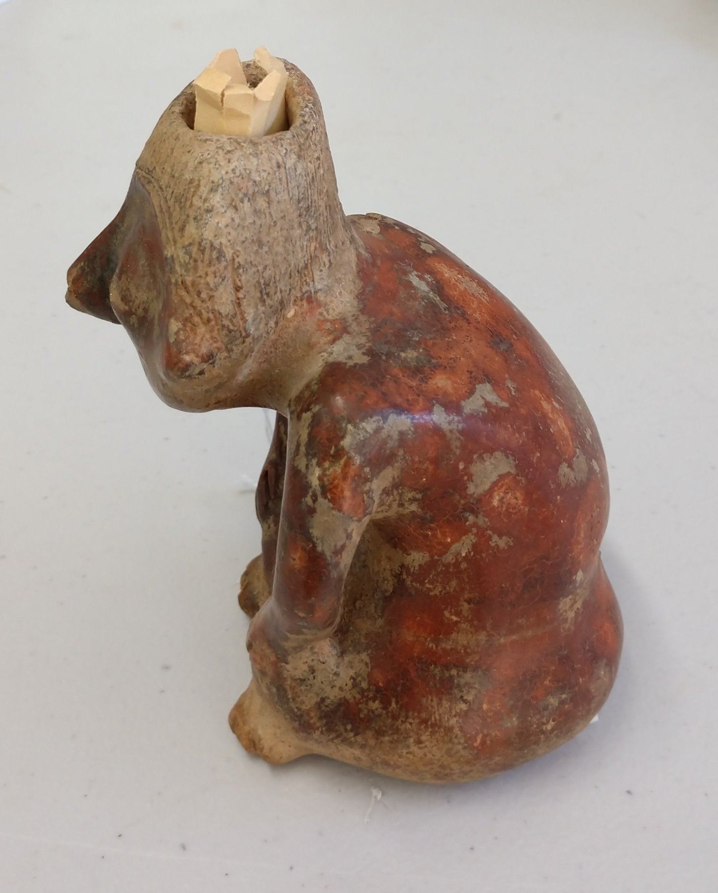 Seated Chinesco Figure, c. 1700 years old. Made of clay and paint, the item measures 5" x 3" x 3". Nayarit, Mexico. Type A. From an old, 1960s California collection. Condition: Minor nick on shoulder, see images. Shipping: $45.00 USA estimate only, w/insurance and signature.