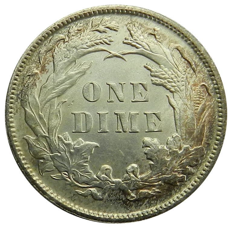 Seated Liberty Dime, 1889. Choice Unc, lt golden toning with nice luster.