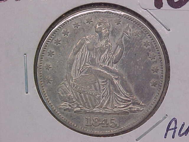 Seated Liberty Half $ 1845 AU, nice detail, ?tone