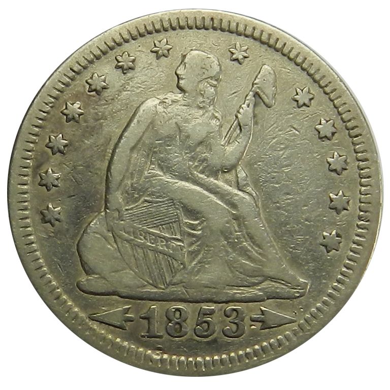 Seated Liberty Quarter, 1853. Arrows & Rays. Choice VF-EF, lt scattered mks but still appealing one year type coin.
