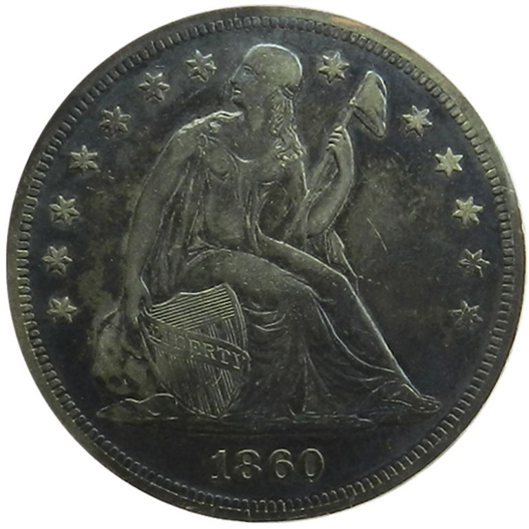 1860-O. SEGS VF20. Deeply toned, reverse looks Choice EF.